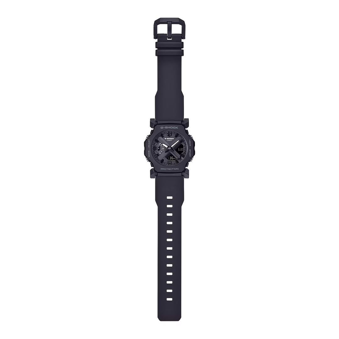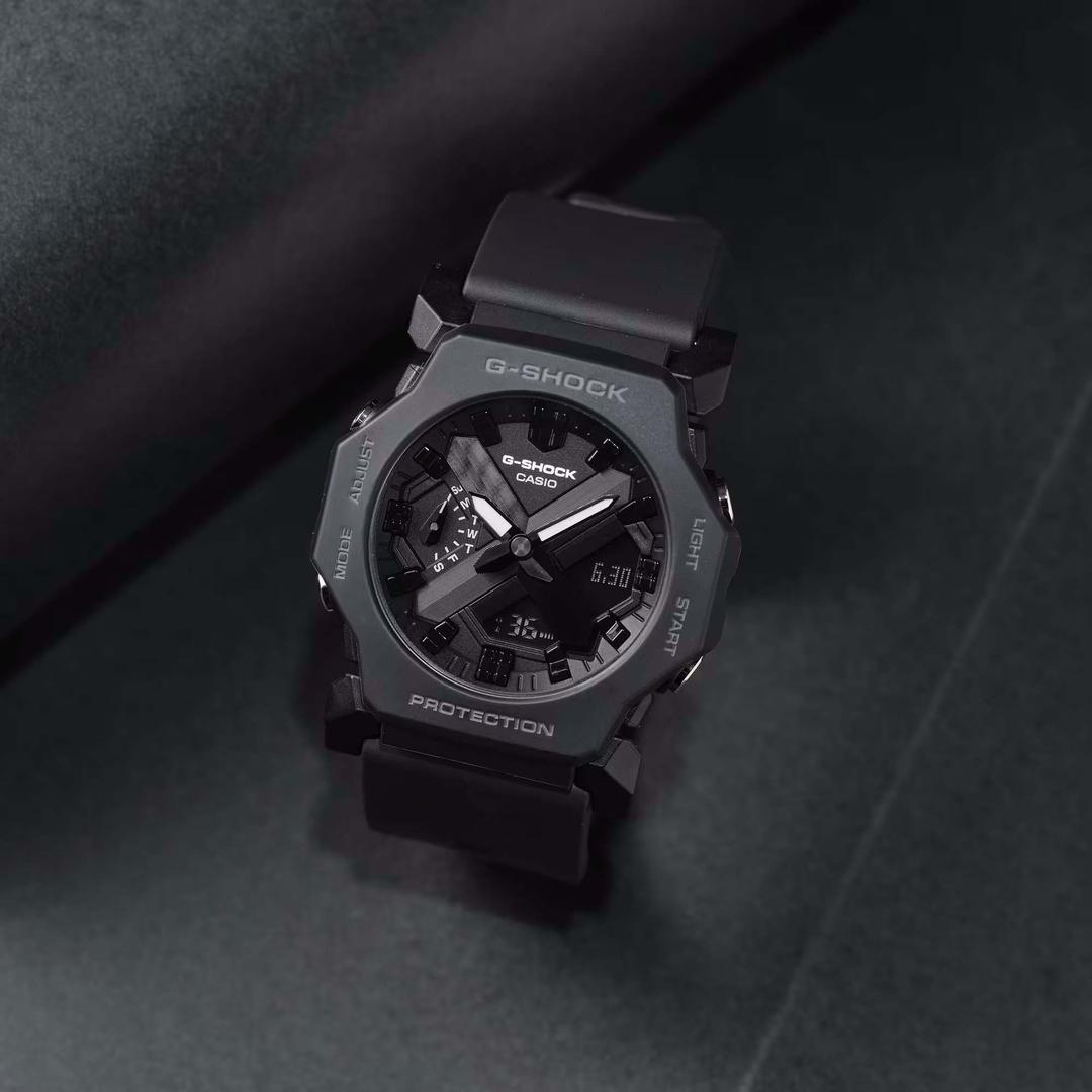 ساعت مچی کاسیو جی شاک مدل GA-2300-1AD یک محصول آنالوگ-دیجیتال با طراحی صنعتی و مقاوم است. این مدل با بدنه و بند رزینی مشکی، مقاومت در برابر ضربه و آب تا عمق 200 متر را ارائه میدهد. دارای نور پس زمینه LED دوگانه (Super Illuminator) برای روشنایی صفحه آنالوگ و دیجیتال است. زمانسنج با دقت 1/100 ثانیه، تایمر شمارش معکوس، 5 آلارم روزانه و اعلان زمان از دیگر ویژگیهای این ساعت یونیسکس است.