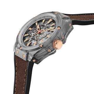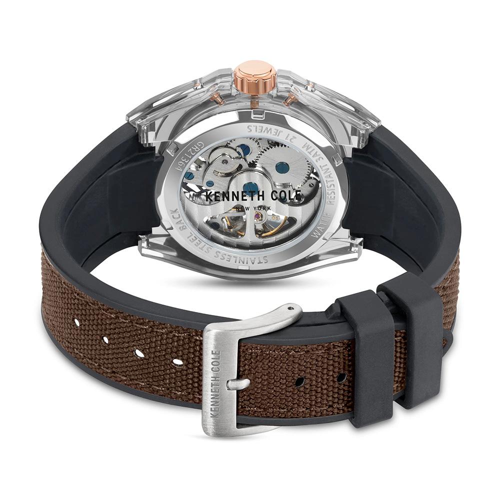 ساعت مچی اتوماتیک کنت کول مدل KCWGR2136404 را میتوان یک اثر هنری مهندسی شده روی مچ دست دانست؛ جایی که طراحی مدرن با ظرافت فنی تلفیق شده است. قاب استیل ۴۴ میلیمتری، استحکام و جلوهای پرقدرت به ساعت میبخشد، در حالی که صفحه اسکلتون با نمایش دقیق چرخدندهها و مکانیزم داخلی، حس حرکتی پویا و زنده به ساعت میدهد.