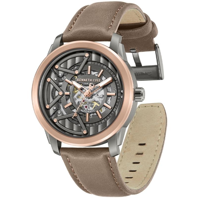 ساعت کنت کول مدل KCWGX0064902 با طراحی اسکلتون و مکانیزم اتوماتیک، ترکیبی از زیبایی و عملکرد دقیق را ارائه میدهد و برای استفادههای روزمره، محیطهای رسمی و مجالس نیمهرسمی بسیار مناسب است. قاب استیل ضدزنگ با قطر 44 میلیمتر و ضخامت 12 میلیمتر دوام بالا و حضور برجستهای روی مچ ایجاد میکند، در حالی که صفحه گان متال با طراحی اسکلتون امکان مشاهده حرکت چرخدندهها را فراهم میکند و جلوهای مدرن و فنی دارد.