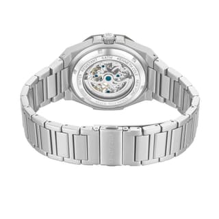 ساعت با استفاده از موتور مکانیکی، بدون نیاز به باتری با حرکت مچ دست کار میکند و نمایش زمان آن به صورت آنالوگ با عقربههای ساعت، دقیقه و ثانیه انجام میشود. بند آن دارای قفل تاشو با دکمه فشاری است و طراحی اسکلتون صفحه، نمایی جذاب از اجزای داخلی ساعت را به نمایش میگذارد. رنگ خاکی صفحه و قاب بالایی با رنگ نقرهای بند و قاب تضاد زیبایی ایجاد کرده و عقربهها با طراحی ساده، خوانایی بالایی دارند.