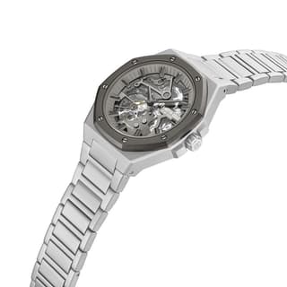 این ساعت مچی اتوماتیک با قطر قاب ۴۲ میلیمتر و ضخامت ۱۳ میلیمتر، وزنی تقریبی ۱۷۷ گرم دارد و از استیل ضدزنگ با رنگ نقرهای ساخته شده است. شیشه معدنی مقاوم آن، سطح صفحه را در برابر خراش محافظت میکند و مقاومت در برابر آب تا ۵۰ متر امکان استفاده روزمره و حتی شنا در سطح آب را فراهم میآورد.