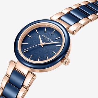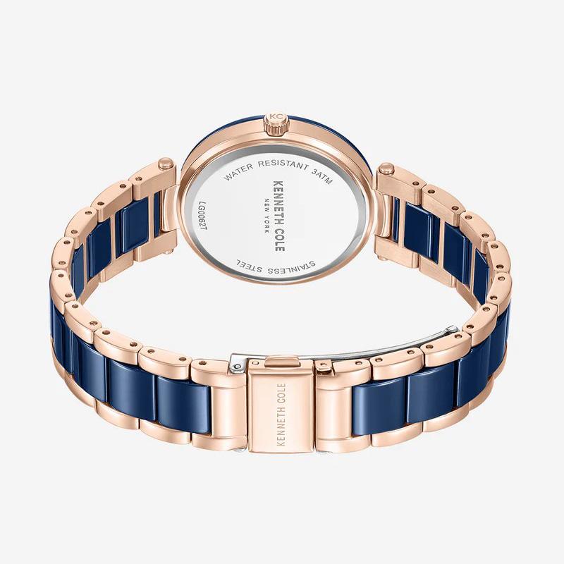 ساعت زنانه کنت کول مدل KCWLG0062701 با طراحی مینیمالیستی و ترکیب رنگی زیبا، گزینهای مناسب برای استفاده روزمره و رسمی است. این ساعت دارای قاب استیل ضدزنگ با پوشش رزگلد و بند سرامیکی دو رنگ با ترکیب آبی و رزگلد است. قطر قاب این ساعت 32 میلیمتر و ضخامت آن 9.5 میلیمتر است.