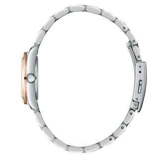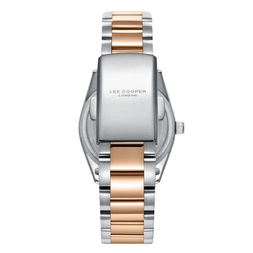 قاب ظریف ۲۸ میلیمتری آن از آلیاژ مقاوم Super Metal ساخته شده و رنگ دوگانهی نقرهای و رزگلد در بند استیل، ترکیبی از جسارت و لطافت زنانه را نشان میدهد. صفحه با طرح Mother of Pearl، هر بار در نور تغییر رنگ میدهد؛ گویی قطعهای از دریا روی مچ شما نشسته است. در دل طراحی زیبای ساعت lee cooper زنانه معرفیشده، موتور کوارتز مدل 2035 Movement کار میکند که دقت بالا و عمر طولانی را تضمین میکند. شیشه مینرال مقاوم در برابر خط و خش سبک و مقاومت ۵ATM در برابر آب، ساعت را برای استفاده روزمره ایمن میسازد.