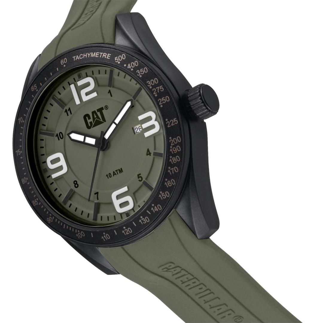 این مدل کترپیلار 44 میلیمتر قطر، 15 میلیمتر ضخامت و 62 گرم وزن دارد. بند سیلیلکونی سبزرنگ ساعت مچی کاترپیلار LQ.161.23.332 بسیار سبک بوده و با استفاده طولانیمدت سبب ایجاد حساسیت و خستگی نمیشود. مقاومت ساعت در برابر آب 10ATM است، بنابراین برای شنا در مناطق کمعمق مناسب است.