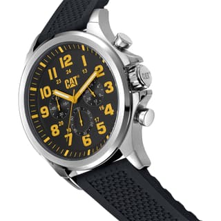 کترپیلار مدل PU.143.21.117 یکی از ساعت های مچی مردانه و مقاوم برند آمریکایی CAT است که با بدنهای از استیل ضدزنگ و بندی از سیلیکون مشکی مقاوم طراحی شده است. این مدل دارای قطر قاب 48 میلیمتر و ضخامت 11.8 میلیمتر است که ظاهر آن را قدرتمند و مناسب برای مچهای متوسط تا پهن میسازد. موتور آن از نوع کوارتز کرنوگراف بوده و دقتی در حدود ±20 ثانیه در ماه دارد که برای استفاده روزمره و ورزشی اطمینانبخش است. عقربهها و شاخصهای شبنما، امکان خواندن ساعت در تاریکی را فراهم میکنند.