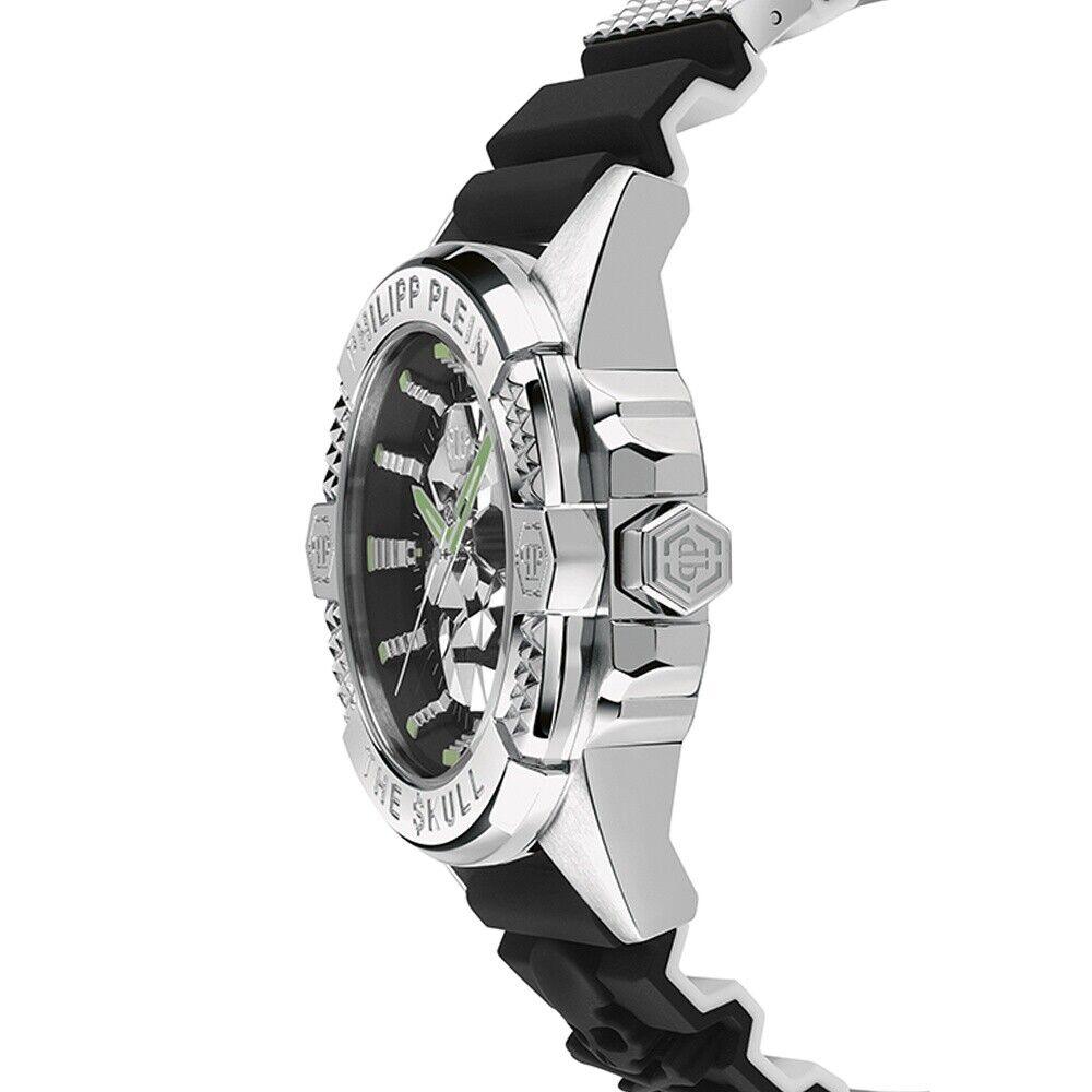 ساعت مردانه فیلیپ پلین PWAAA0121 ترکیبی از دوام، راحتی و طراحی مدرن است. قاب استیل ضد زنگ نقرهای 44 میلیمتری و بند سیلیکونی مشکی حس استحکام و راحتی روی مچ را همزمان به شما میدهند.