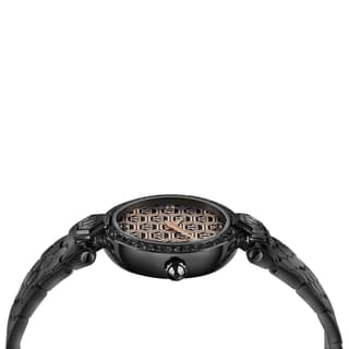 جزئیات خیرهکننده این مدل حضور کریستالهای Swarovski روی صفحه و بزل است که جلوهای پرزرقوبرق و درخشان به ساعت بخشیده و آن را به اکسسوریای متمایز برای استایلهای رسمی و مجلسی تبدیل میکند. موتور کوارتز دقیق، عملکردی مطمئن و بدون دردسر ارائه میدهد و دو عقربه ساعت و دقیقه تجربهای ساده و شیک از نمایش زمان فراهم میسازند.