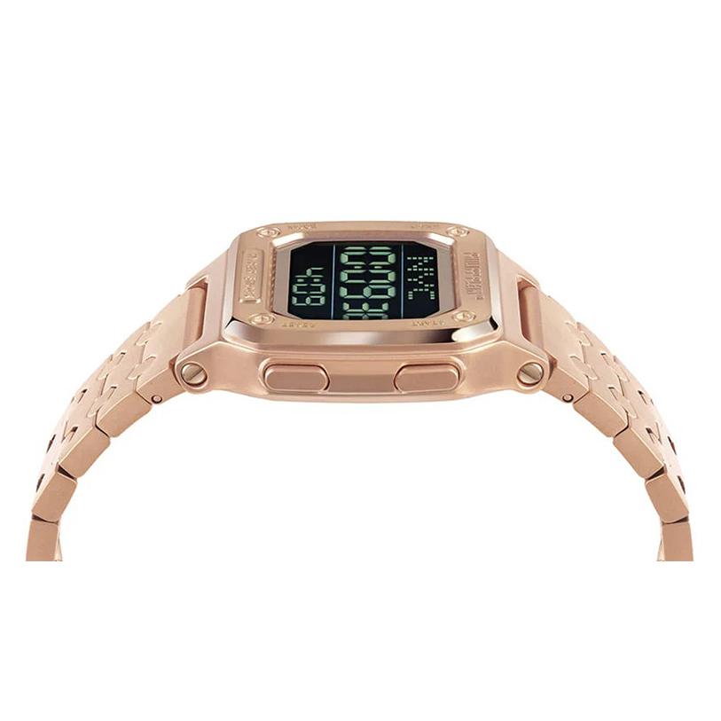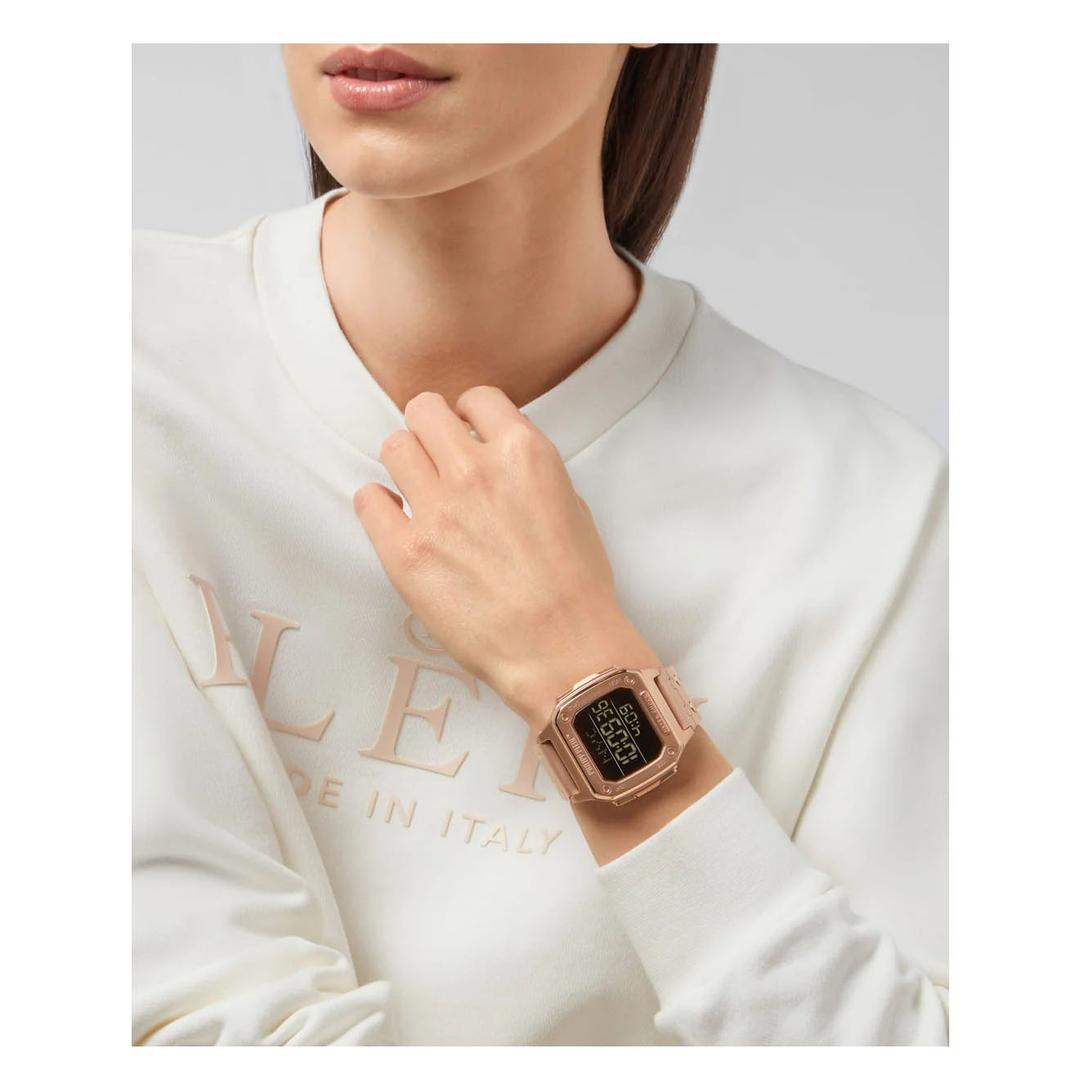 ساعت فیلیپ پلین PWHAA0721 با طراحی دیجیتال و قاب مستطیلی مدرن، نمایانگر جسارت و نگرش متفاوت این برند به دنیای ساعتسازی است. صفحه دیجیتال با جلوهای اسپرت و جزئیات برند، در کنار طراحی پرانرژی قاب و بند، هویتی منحصربهفرد به این مدل میبخشد. این ساعت از موتور کوارتز دیجیتال بهره میبرد که دقت بالا و امکانات متنوعی چون آلارم، تقویم روزانه، کرنومتر، تایمر، ساعت جهانی و نور پسزمینه را ارائه میدهد و تجربهای کامل و کاربردی برای استفاده روزمره فراهم میسازد. شیشه مینرال سختشده مقاومت خوبی در برابر خطوخش ایجاد کرده و مقاومت در برابر آب تا عمق ۵۰ متر باعث میشود ساعت در برابر شرایط روزمره مانند شستوشوی دست یا قرار گرفتن زیر باران، انتخابی مطمئن باشد. طراحی خاص قاب و جزئیات برند روی بند، ظاهری اسپرت و مدرن به ساعت میبخشند و در مجموع، Philipp Plein PWHAA0721 انتخابی است برای کسانی که میخواهند ترکیبی از استایل جسورانه، امکانات دیجیتال متنوع و دوام بالا را در یک ساعت شخصیتساز تجربه کنند.