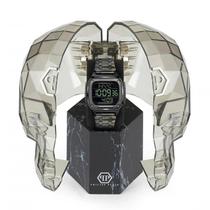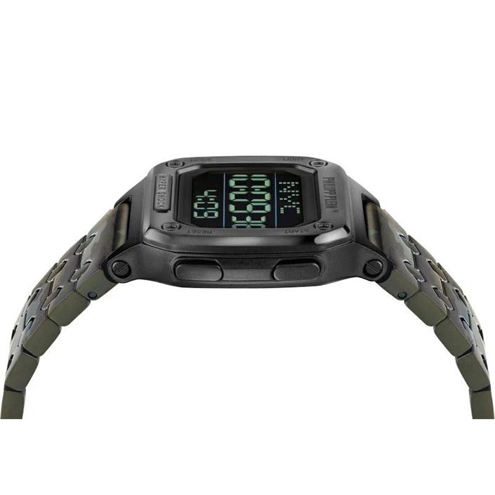 ساعت فیلیپ پلین PWHAA0921 با طراحی دیجیتال و قاب مستطیلی مدرن، نمایانگر جسارت و نگرش متفاوت این برند به دنیای ساعتسازی است. صفحه دیجیتال با جلوهای اسپرت و جزئیات برند، در کنار طراحی پرانرژی قاب و بند ، هویتی منحصربهفرد به این مدل میبخشد. این ساعت از موتور کوارتز دیجیتال بهره میبرد که دقت بالا و امکانات متنوعی چون آلارم، تقویم روزانه، کرنومتر، تایمر، ساعت جهانی و نور پسزمینه را ارائه میدهد و تجربهای کامل و کاربردی برای استفاده روزمره فراهم میسازد. شیشه مینرال سختشده مقاومت خوبی در برابر خطوخش ایجاد کرده و مقاومت در برابر آب تا عمق ۵۰ متر باعث میشود ساعت در برابر شرایط روزمره مانند شستوشوی دست یا قرار گرفتن زیر باران، انتخابی مطمئن باشد. طراحی خاص قاب و جزئیات برند روی بند، ظاهری اسپرت و مدرن به ساعت میبخشند و در مجموع، Philipp Plein PWHAA0921 انتخابی است برای کسانی که میخواهند ترکیبی از استایل جسورانه، امکانات دیجیتال متنوع و دوام بالا را در یک ساعت شخصیتساز تجربه کنند.