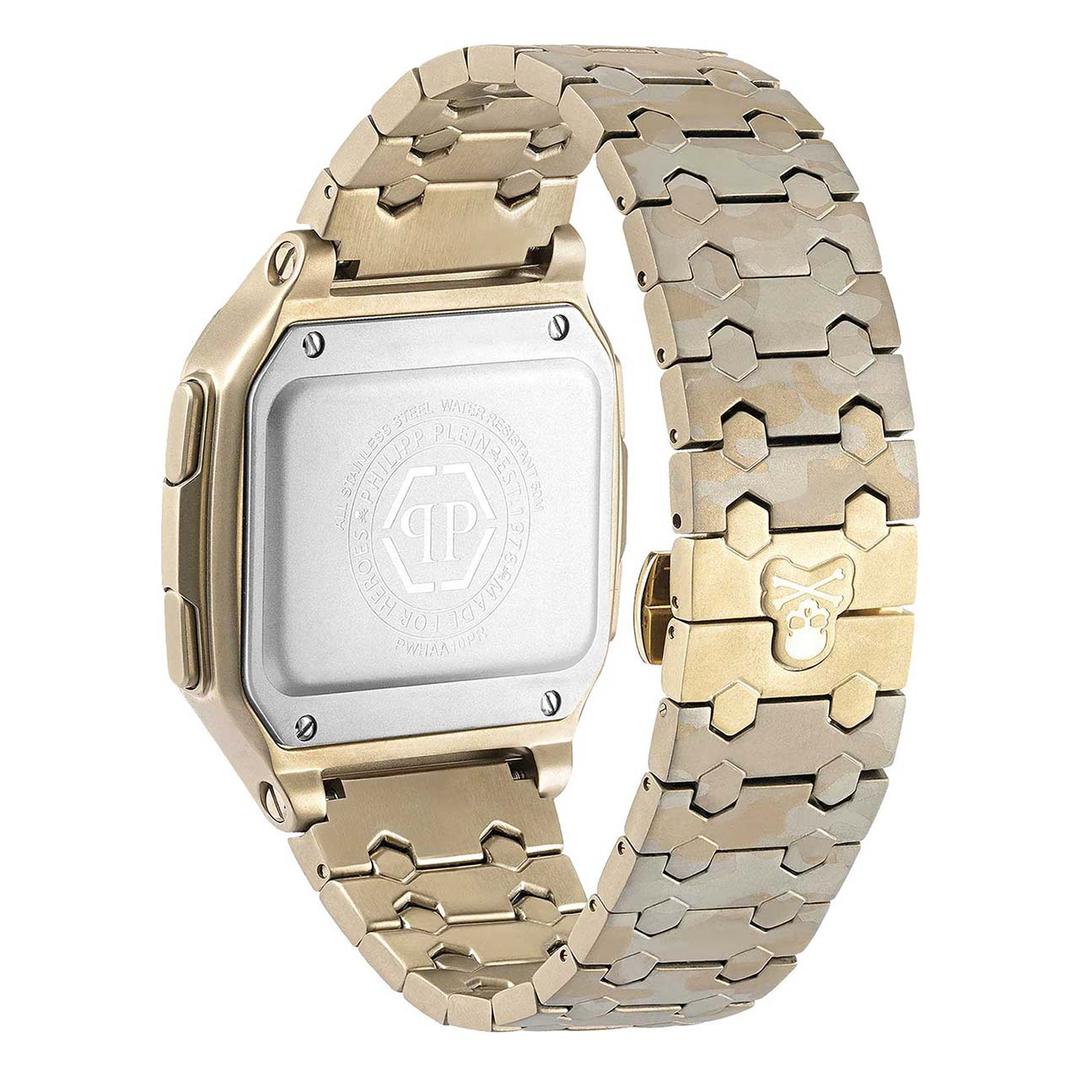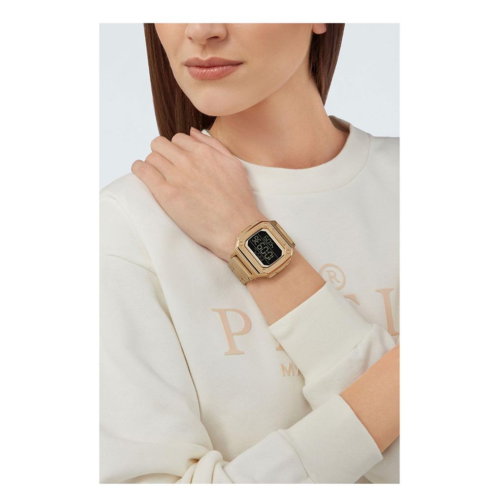 ساعت فیلیپ پلین PWHAA1021 با طراحی دیجیتال و قاب مستطیلی مدرن، نمایانگر جسارت و نگرش متفاوت این برند به دنیای ساعتسازی است. صفحه دیجیتال با جلوهای اسپرت و جزئیات برند، در کنار طراحی پرانرژی قاب و بند ، هویتی منحصربهفرد به این مدل میبخشد. این ساعت از موتور کوارتز دیجیتال بهره میبرد که دقت بالا و امکانات متنوعی چون آلارم، تقویم روزانه، کرنومتر، تایمر، ساعت جهانی و نور پسزمینه را ارائه میدهد و تجربهای کامل و کاربردی برای استفاده روزمره فراهم میسازد. شیشه مینرال سختشده مقاومت خوبی در برابر خطوخش ایجاد کرده و مقاومت در برابر آب تا عمق ۵۰ متر باعث میشود ساعت در برابر شرایط روزمره مانند شستوشوی دست یا قرار گرفتن زیر باران، انتخابی مطمئن باشد. طراحی خاص قاب و جزئیات برند روی بند، ظاهری اسپرت و مدرن به ساعت میبخشند و در مجموع، Philipp Plein PWHAA1021 انتخابی است برای کسانی که میخواهند ترکیبی از استایل جسورانه، امکانات دیجیتال متنوع و دوام بالا را در یک ساعت شخصیتساز تجربه کنند.