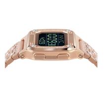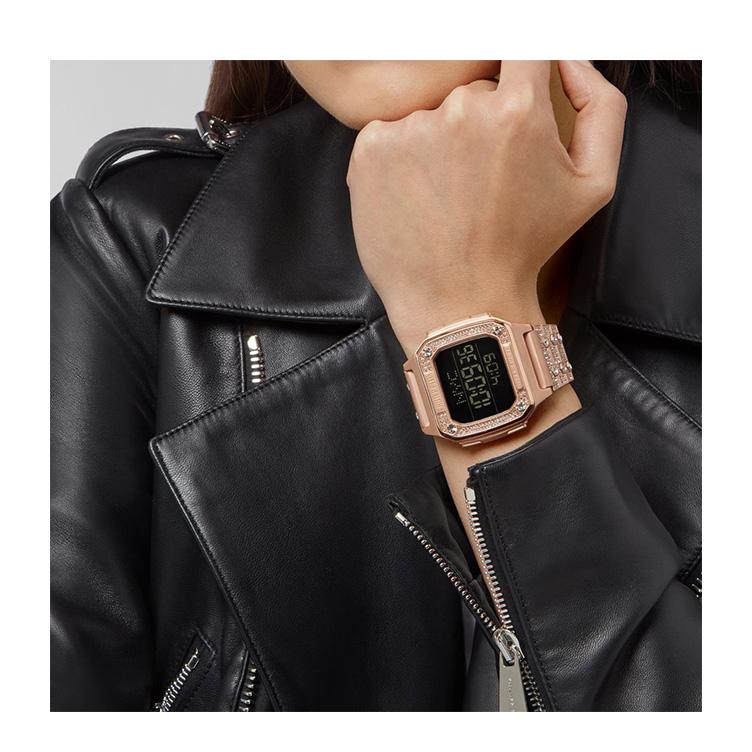 ساعت فیلیپ پلین PWHAA1221 با طراحی دیجیتال و قاب مستطیلی مدرن، نمایانگر جسارت و نگرش متفاوت این برند به دنیای ساعتسازی است. صفحه دیجیتال با جلوهای اسپرت و جزئیات برند، در کنار طراحی پرانرژی قاب و بند ، هویتی منحصربهفرد به این مدل میبخشد. این ساعت از موتور کوارتز دیجیتال بهره میبرد که دقت بالا و امکانات متنوعی چون آلارم، تقویم روزانه، کرنومتر، تایمر، ساعت جهانی و نور پسزمینه را ارائه میدهد و تجربهای کامل و کاربردی برای استفاده روزمره فراهم میسازد. شیشه مینرال سختشده مقاومت خوبی در برابر خطوخش ایجاد کرده و مقاومت در برابر آب تا عمق ۵۰ متر باعث میشود ساعت در برابر شرایط روزمره مانند شستوشوی دست یا قرار گرفتن زیر باران، انتخابی مطمئن باشد. طراحی خاص قاب و جزئیات برند روی بند، ظاهری اسپرت و مدرن به ساعت میبخشند و در مجموع، Philipp Plein PWHAA1221 انتخابی است برای کسانی که میخواهند ترکیبی از استایل جسورانه، امکانات دیجیتال متنوع و دوام بالا را در یک ساعت شخصیتساز تجربه کنند.