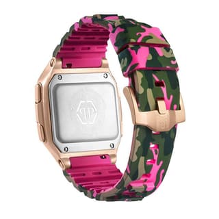 ساعت فیلیپ پلین PWHAA1622 با طراحی دیجیتال و قاب مستطیلی مدرن، نمایانگر جسارت و نگرش متفاوت این برند به دنیای ساعتسازی است. صفحه دیجیتال با جلوهای اسپرت و جزئیات برند، در کنار طراحی پرانرژی قاب و بند ، هویتی منحصربهفرد به این مدل میبخشد. این ساعت از موتور کوارتز دیجیتال بهره میبرد که دقت بالا و امکانات متنوعی چون آلارم، تقویم روزانه، کرنومتر، تایمر، ساعت جهانی و نور پسزمینه را ارائه میدهد و تجربهای کامل و کاربردی برای استفاده روزمره فراهم میسازد. شیشه مینرال سختشده مقاومت خوبی در برابر خطوخش ایجاد کرده و مقاومت در برابر آب تا عمق ۵۰ متر باعث میشود ساعت در برابر شرایط روزمره مانند شستوشوی دست یا قرار گرفتن زیر باران، انتخابی مطمئن باشد. طراحی خاص قاب و جزئیات برند روی بند، ظاهری اسپرت و مدرن به ساعت میبخشند و در مجموع، Philipp Plein PWHAA1622 انتخابی است برای کسانی که میخواهند ترکیبی از استایل جسورانه، امکانات دیجیتال متنوع و دوام بالا را در یک ساعت شخصیتساز تجربه کنند.