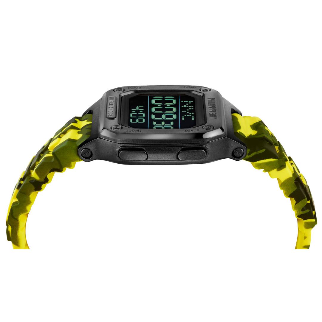 ساعت فیلیپ پلین PWHAA1722 با طراحی دیجیتال و قاب مستطیلی مدرن، نمایانگر جسارت و نگرش متفاوت این برند به دنیای ساعتسازی است. صفحه دیجیتال با جلوهای اسپرت و جزئیات برند، در کنار طراحی پرانرژی قاب و بند، هویتی منحصربهفرد به این مدل میبخشد. این ساعت از موتور کوارتز دیجیتال بهره میبرد که دقت بالا و امکانات متنوعی چون آلارم، تقویم روزانه، کرنومتر، تایمر، ساعت جهانی و نور پسزمینه را ارائه میدهد و تجربهای کامل و کاربردی برای استفاده روزمره فراهم میسازد. شیشه مینرال سختشده مقاومت خوبی در برابر خطوخش ایجاد کرده و مقاومت در برابر آب تا عمق ۵۰ متر باعث میشود ساعت در برابر شرایط روزمره مانند شستوشوی دست یا قرار گرفتن زیر باران، انتخابی مطمئن باشد. طراحی خاص قاب و جزئیات برند روی بند، ظاهری اسپرت و مدرن به ساعت میبخشند و در مجموع، Philipp Plein PWHAA1722 انتخابی است برای کسانی که میخواهند ترکیبی از استایل جسورانه، امکانات دیجیتال متنوع و دوام بالا را در یک ساعت شخصیتساز تجربه کنند
