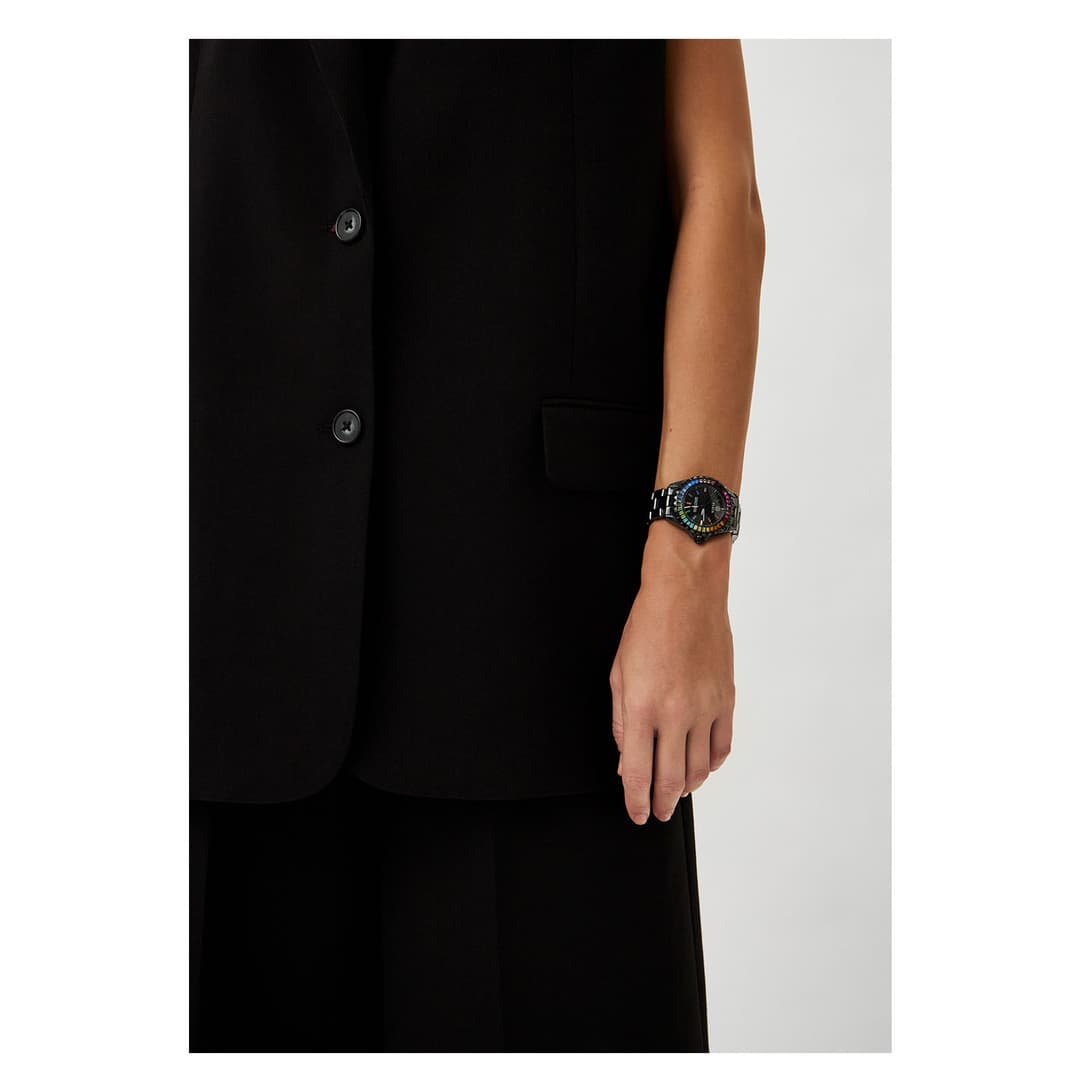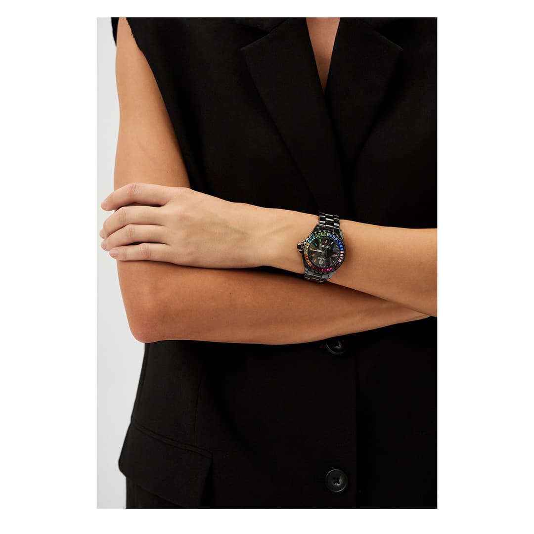 بند استیل با قفل تاشونده ایمن، ترکیبی از دوام و راحتی را عرضه میکند و در کنار طراحی پرزرقوبرق بزل، این مدل را به انتخابی ویژه برای کسانی تبدیل میسازد که به دنبال ساعتی همزمان شیک و کاربردی هستند.