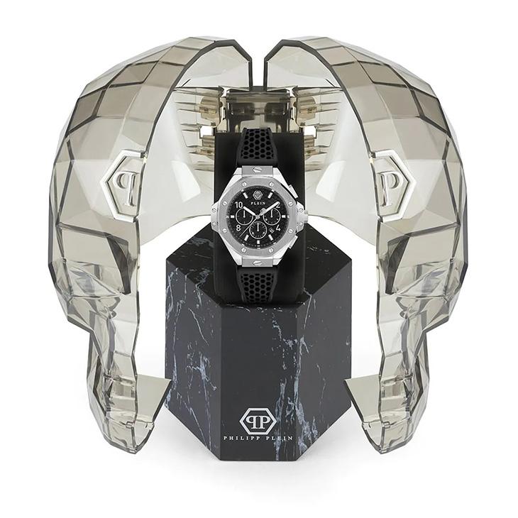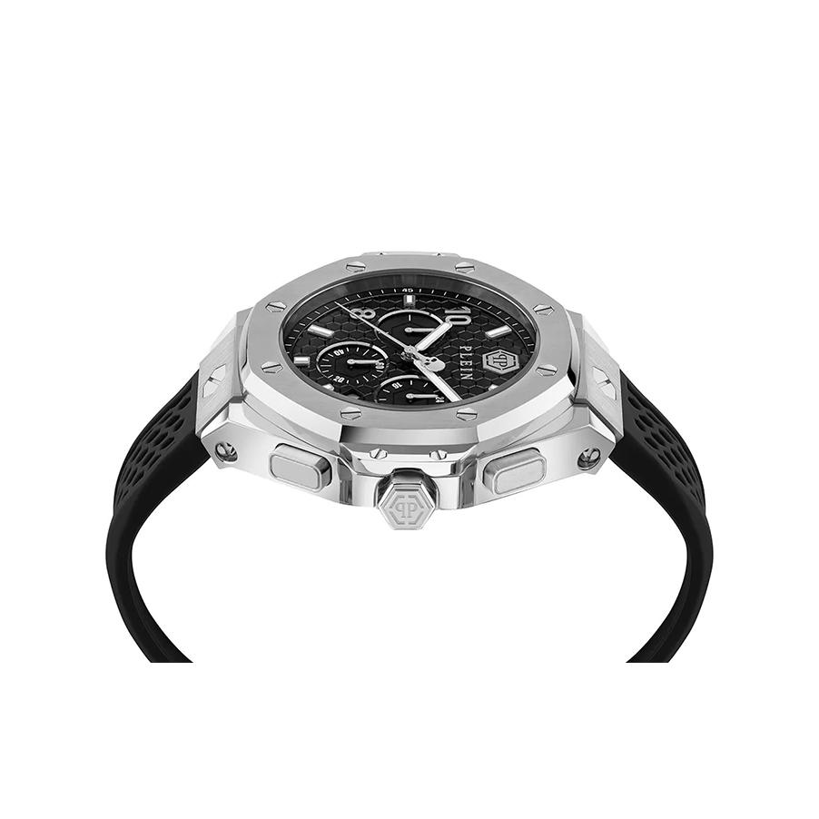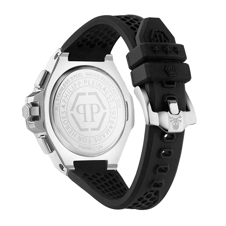 ساعت فیلیپ پلین PWPRA0124 با قاب استیل ۴۶ میلیمتری و طراحی شاخص صفحه، نمادی از جسارت و نگاه متفاوت این برند به دنیای ساعتسازی است. حضور پیچهای هگزاگونال روی قاب، ایندکسهای برجسته و لوگوی نمادین PP در موقعیت ساعت ۱۲ در کنار عقربه ثانیه با نشانه جمجمه، جلوهای خاص و چشمگیر به این مدل بخشیده و امضای منحصربهفرد فیلیپ پلین را تکمیل میکند. این ساعت از موتور کوارتز ژاپنی Seiko YM12A بهره میبرد که دقت بالا، نگهداری ساده و عملکرد مطمئن را تضمین میکند و با داشتن قابلیت کرونوگراف و نمایش تاریخ بین ساعتهای ۴ و ۵ کارایی آن برای استفاده روزمره کاملتر شده است. شیشهی مینرال سختشده مقاومت خوبی در برابر خط و خش ایجاد کرده و عقربهها و اندکسهای شبتاب نیز خوانایی در نور کم را تضمین میکنند. مقاومت در برابر آب تا عمق ۵۰ متر باعث میشود این ساعت برای استفاده روزمره، از شستوشوی دست گرفته تا قرار گرفتن زیر باران، انتخابی مطمئن باشد. بند سیلیکونی مشکی با سوراخهای هگزاگونال علاوه بر راحتی و سبکی، جلوهای اسپرت و مدرن به ساعت میبخشد و قفل سگکی آن اطمینان و ثبات بیشتری فراهم میآورد. در مجموع، Philipp Plein PWPRA0124 انتخابی است برای کسانی که میخواهند ترکیبی از استایل جسورانه، جزئیات منحصربهفرد و قابلیتهای کاربردی روزمره را در یک ساعت بادوام و شخصیتساز تجربه کنند.