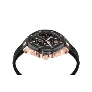 ساعت فیلیپ پلین PWPRA0524 با قاب استیل ۴۶ میلیمتری و طراحی شاخص صفحه، نمادی از جسارت و نگاه متفاوت این برند به دنیای ساعتسازی است. حضور پیچهای هگزاگونال روی قاب، ایندکسهای برجسته و لوگوی نمادین PP در موقعیت ساعت ۱۲ در کنار عقربه ثانیه با نشانه جمجمه، جلوهای خاص و چشمگیر به این مدل بخشیده و امضای منحصربهفرد فیلیپ پلین را تکمیل میکند. این ساعت از موتور کوارتز ژاپنی Seiko YM12A بهره میبرد که دقت بالا، نگهداری ساده و عملکرد مطمئن را تضمین میکند و با داشتن قابلیت کرونوگراف و نمایش تاریخ بین ساعتهای ۴ و ۵ کارایی آن برای استفاده روزمره کاملتر شده است. شیشهی مینرال سختشده مقاومت خوبی در برابر خط و خش ایجاد کرده و عقربهها و اندکسهای شبتاب نیز خوانایی در نور کم را تضمین میکنند. مقاومت در برابر آب تا عمق ۵۰ متر باعث میشود این ساعت برای استفاده روزمره، از شستوشوی دست گرفته تا قرار گرفتن زیر باران، انتخابی مطمئن باشد. بند سیلیکونی مشکی با سوراخهای هگزاگونال علاوه بر راحتی و سبکی، جلوهای اسپرت و مدرن به ساعت میبخشد و قفل سگکی آن اطمینان و ثبات بیشتری فراهم میآورد. در مجموع، Philipp Plein PWPRA0524 انتخابی است برای کسانی که میخواهند ترکیبی از استایل جسورانه، جزئیات منحصربهفرد و قابلیتهای کاربردی روزمره را در یک ساعت بادوام و شخصیتساز تجربه کنند.
