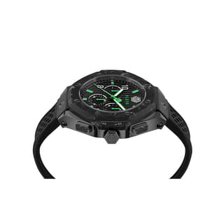 ساعت فیلیپ پلین PWPRA0624 با قاب استیل ۴۶ میلیمتری و طراحی شاخص صفحه، نمادی از جسارت و نگاه متفاوت این برند به دنیای ساعتسازی است. حضور پیچهای هگزاگونال روی قاب، ایندکسهای برجسته و لوگوی نمادین PP در موقعیت ساعت ۱۲ در کنار عقربه ثانیه با نشانه جمجمه، جلوهای خاص و چشمگیر به این مدل بخشیده و امضای منحصربهفرد فیلیپ پلین را تکمیل میکند. این ساعت از موتور کوارتز ژاپنی Seiko YM12A بهره میبرد که دقت بالا، نگهداری ساده و عملکرد مطمئن را تضمین میکند و با داشتن قابلیت کرونوگراف و نمایش تاریخ بین ساعتهای ۴ و ۵ کارایی آن برای استفاده روزمره کاملتر شده است. شیشهی مینرال سختشده مقاومت خوبی در برابر خط و خش ایجاد کرده و عقربهها و اندکسهای شبتاب نیز خوانایی در نور کم را تضمین میکنند. مقاومت در برابر آب تا عمق ۵۰ متر باعث میشود این ساعت برای استفاده روزمره، از شستوشوی دست گرفته تا قرار گرفتن زیر باران، انتخابی مطمئن باشد. بند سیلیکونی مشکی با سوراخهای هگزاگونال علاوه بر راحتی و سبکی، جلوهای اسپرت و مدرن به ساعت میبخشد و قفل سگکی آن اطمینان و ثبات بیشتری فراهم میآورد. در مجموع، Philipp Plein PWPRA0624 انتخابی است برای کسانی که میخواهند ترکیبی از استایل جسورانه، جزئیات منحصربهفرد و قابلیتهای کاربردی روزمره را در یک ساعت بادوام و شخصیتساز تجربه کنند.