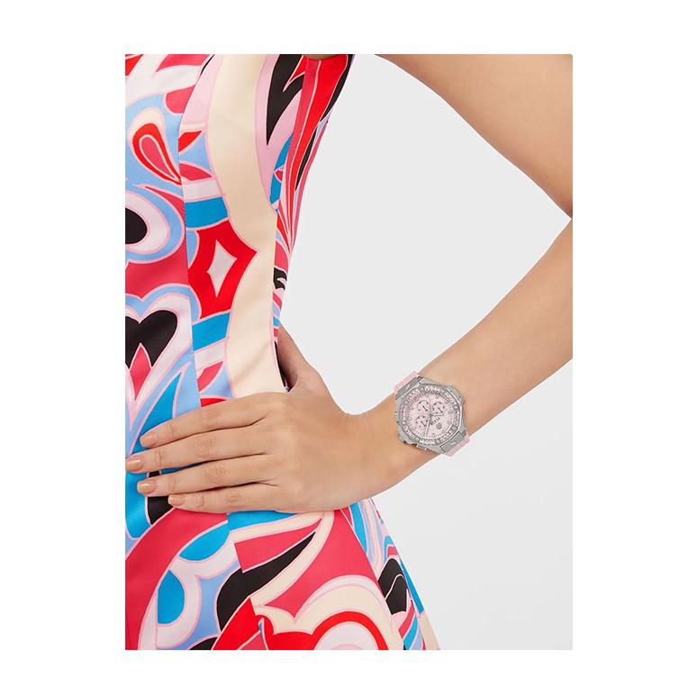 ساعت فیلیپ پلین PWPSA0524 با قاب استیل ۴۲ میلیمتری و طراحی متمایز خود، ترکیبی از جسارت و ظرافت را به نمایش میگذارد. قاب مزین به جزئیات درخشان و فرم خاص هگزاگونال در کنار صفحهی چشمگیر و لوگوی شاخص برند، ظاهری منحصربهفرد و متفاوت ایجاد کرده است. این مدل از موتور کوارتز ژاپنی YM12A-M بهره میبرد که با دقت بالا و عملکرد مطمئن، امکاناتی چون کرونوگراف، نمایش تاریخ و نشانگر ۲۴ ساعته را ارائه میدهد. شیشهی مینرال سختشده مقاومت مطلوبی در برابر خط و خش دارد و عقربهها و ایندکسهای شبتاب خوانایی ساعت را در شرایط کمنور تضمین میکنند. همچنین مقاومت در برابر آب تا عمق ۵۰ متر استفادهی روزمره بدون نگرانی را ممکن میسازد. در مجموع، Philipp Plein PWPSA0524 انتخابی است برای کسانی که به دنبال ساعتی با طراحی فشن و پرجلوه در کنار قابلیتهای کاربردی و دوام بالا هستند
