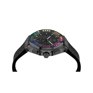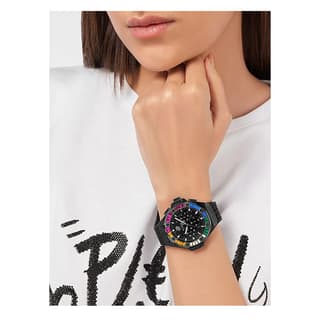 ساعت فیلیپ پلین PWPSA0724 با قاب استیل ۴۲ میلیمتری و طراحی متمایز خود، ترکیبی از جسارت و ظرافت را به نمایش میگذارد. قاب مزین به جزئیات درخشان و فرم خاص هگزاگونال در کنار صفحهی چشمگیر و لوگوی شاخص برند، ظاهری منحصربهفرد و متفاوت ایجاد کرده است. این مدل از موتور کوارتز ژاپنی YM12A-M بهره میبرد که با دقت بالا و عملکرد مطمئن، امکاناتی چون کرونوگراف، نمایش تاریخ و نشانگر ۲۴ ساعته را ارائه میدهد. شیشهی مینرال سختشده مقاومت مطلوبی در برابر خط و خش دارد و عقربهها و ایندکسهای شبتاب خوانایی ساعت را در شرایط کمنور تضمین میکنند. همچنین مقاومت در برابر آب تا عمق ۵۰ متر استفادهی روزمره بدون نگرانی را ممکن میسازد. در مجموع، Philipp Plein PWPSA0724 انتخابی است برای کسانی که به دنبال ساعتی با طراحی فشن و پرجلوه در کنار قابلیتهای کاربردی و دوام بالا هستند