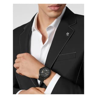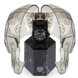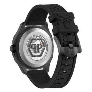 ساعت PWRAA0923 از کالکشن $keleton $pectre High-Conic با قاب استیل ۴۲ میلیمتری و صفحه اسکلتون، ترکیبی از اصالت مکانیکی و جسارت طراحی است. نماد سهبعدی جمجمه ($kull) در مرکز صفحه، امضای متمایز فیلیپ پلین را نشان میدهد.