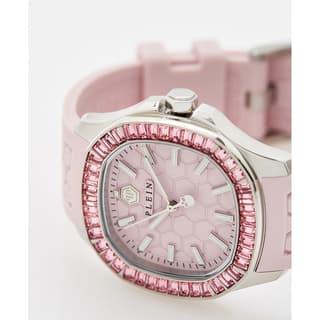 کلکسیون $pectre Lady با ترکیب جزئیات لوکس، طراحی هندسی خاص و نمادهای شاخص برند، جایگاه جسورانه فیلیپ پلین را در دنیای ساعتسازی نشان میدهد. لوگوی Plein در ساعت ۱۲ و آیکون کوچک جمجمه ($kull)، امضای متمایز برند هستند.