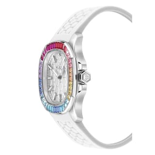 کلکسیون $pectre Lady با ترکیب جزئیات لوکس، طراحی هندسی خاص و نمادهای شاخص برند، جایگاه جسورانه فیلیپ پلین را در دنیای ساعتسازی نشان میدهد. لوگوی Plein در ساعت ۱۲ و آیکون کوچک جمجمه ($kull)، امضای متمایز برند هستند.
