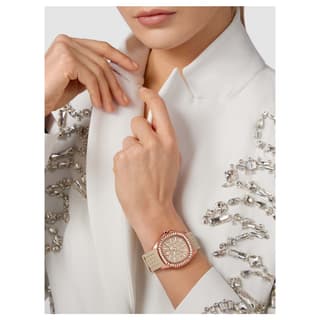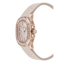 ساعتPWTAA0423 از کالکشن $pectre Lady با قاب استیل ۳۸ میلیمتری و طراحی ظریف، جلوهای لوکس و متمایز دارد. قاب تزئینشده با کریستالهای درخشان و صفحهای با الگوی ششضلعی، امضای طراحی خاص فیلیپ پلین را به نمایش میگذارند.