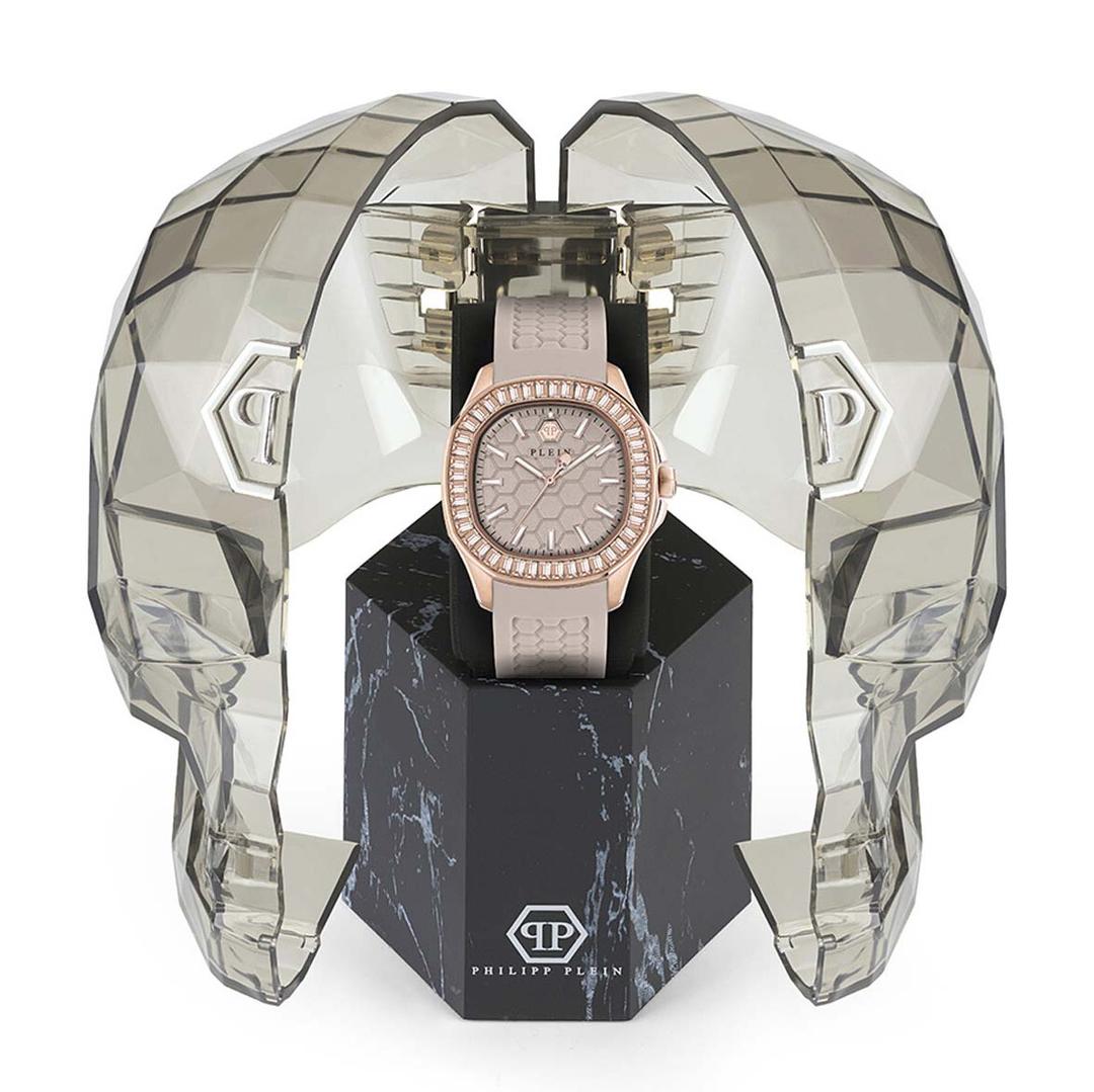 کلکسیون $pectre Lady با ترکیب جزئیات لوکس، طراحی هندسی خاص و نمادهای شاخص برند، جایگاه جسورانه فیلیپ پلین را در دنیای ساعتسازی نشان میدهد. لوگوی Plein در ساعت ۱۲ و آیکون کوچک جمجمه ($kull)، امضای متمایز برند هستند.