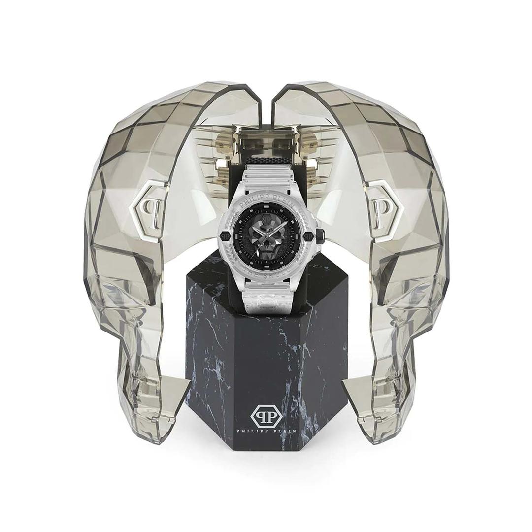 مدل مردانه فیلیپ پلین مدلPWWAA0423 یک محصول منحصربهفرد از سری The Skull 44mm است. ساعت مچی مردانه مدل PWWAA0423 دارای یک قاب شفاف است که از پلاستیک ساخته شده و سطحی مات و صیقلی دارد. قاب گرد پلاستیکی ساعت، 44 میلیمتر عرض و 15 میلیمتر ارتفاع دارد و تقریباً برای هر سایز مچی مناسب است. قاب پشتی ساعت از جنس فولاد ضدزنگ میباشد که به بدنه پرس شده است.