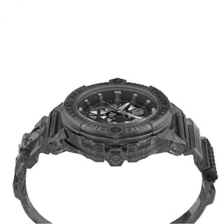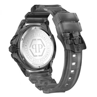 مدل مردانه Philipp Plein PWWAA0523 یک محصول منحصربهفرد از سری The Skull 44mm است. ساعت مچی مردانه مدل PWWAA0523 دارای یک قاب مشکی است که از پلاستیک ساخته شده و سطحی مات و صیقلی دارد. قاب گرد پلاستیکی ساعت، 44 میلیمتر عرض و 15 میلیمتر ارتفاع دارد و تقریباً برای هر سایز مچی مناسب است. قاب پشتی ساعت از جنس فولاد ضدزنگ میباشد که به بدنه پرس شده است.