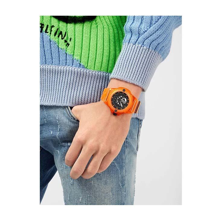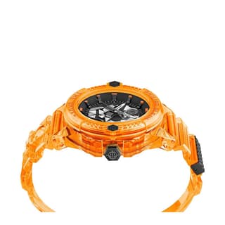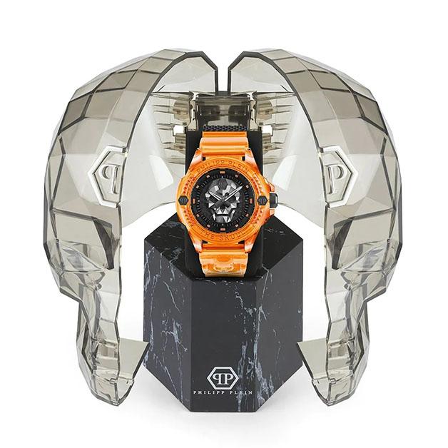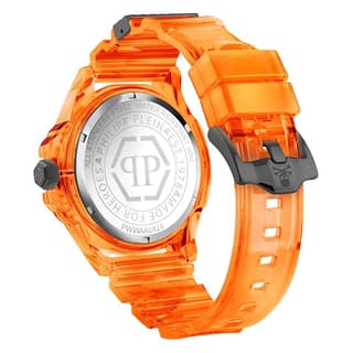 مدل مردانه فیلیپ پلین مدلPWWAA0824 یک محصول منحصربهفرد از سری The Skull 44mm است. ساعت مچی مردانه مدل PWWAA0824 دارای یک قاب نارنجی است که از پلاستیک ساخته شده و سطحی مات و صیقلی دارد. قاب گرد پلاستیکی ساعت، 44 میلیمتر عرض و 15 میلیمتر ارتفاع دارد و تقریباً برای هر سایز مچی مناسب است. قاب پشتی ساعت از جنس فولاد ضدزنگ میباشد که به بدنه پرس شده است.