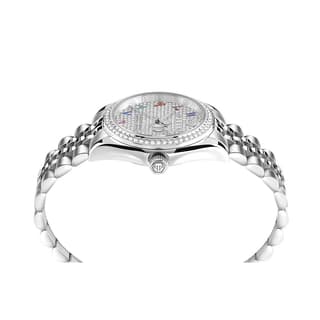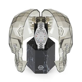 از نظر مشخصات فنی، این اکسسوری مجهز به موتور کوارتز Miyota 2115، بدنه و بند استیل ضدزنگ، شیشه مینرال است و قطر قاب آن معادل ۳۴ × ۱۰ میلیمتر گزارش شده است. امکانات ساعت philipp plein معرفیشده شامل نمایش تاریخ در موقعیت عدد ۳، کریستالهای تزئینی روی بزل، قفل تاشو روی بند استیل، بستهبندی اصلی برند و ضمانت اصالت کالا میشود.