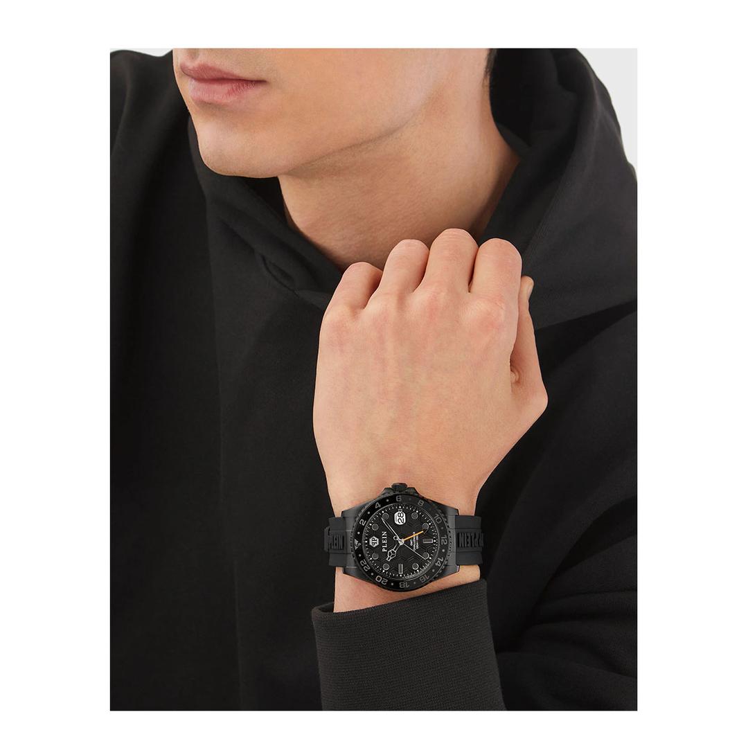 مدل PWYBA1023 از سری GMT-I Challenger این برند، ترکیبی از طراحی مدرن و عملکرد فنی بالا را ارائه میدهد. این ساعت فیلیپ پلین با قطر ۴۴ میلیمتر و ضخامت ۱۳ میلیمتر و قاب استیل ضدزنگ با رنگ مشکی مات طراحی شده است. صفحهنمایش با شیشه معدنی مقاوم در برابر خش پوشانده شده و دارای عقربههای شبنما برای خوانایی بهتر در شرایط کمنور است. موتور کوارتز این ساعت با باتری، زمانسنجی دقیق را تضمین میکند. بند سیلیکونی مشکی با قفل سگکی، راحتی و دوام را در استفاده روزمره فراهم میآورد.