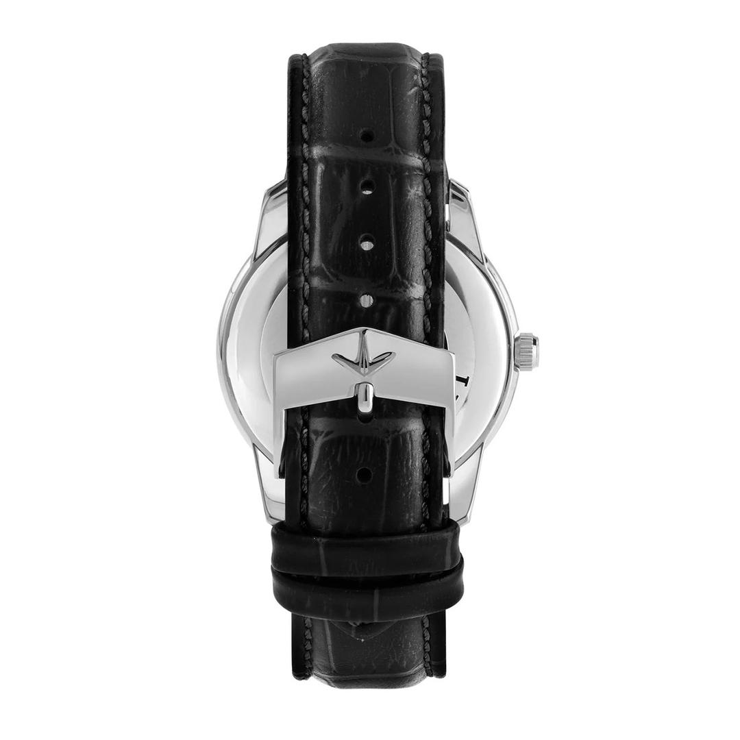 این ساعت دارای موتور مکانیکی خودکار (اتوماتیک) است که عملکردی دقیق و مطمئن بدون نیاز به باتری فراهم میکند و نمایش ساعت، دقیقه و ثانیه را بهطور کامل ارائه میدهد. بند چرمی مشکی با قفل سگکی، راحتی و امنیت استفاده روزمره را تضمین میکند. مقاومت در برابر آب تا فشار ۳ اتمسفر (۳۰ متر)، امکان استفاده در شرایطی مانند شستوشوی دست یا مواجهه با باران سبک را فراهم میکند.