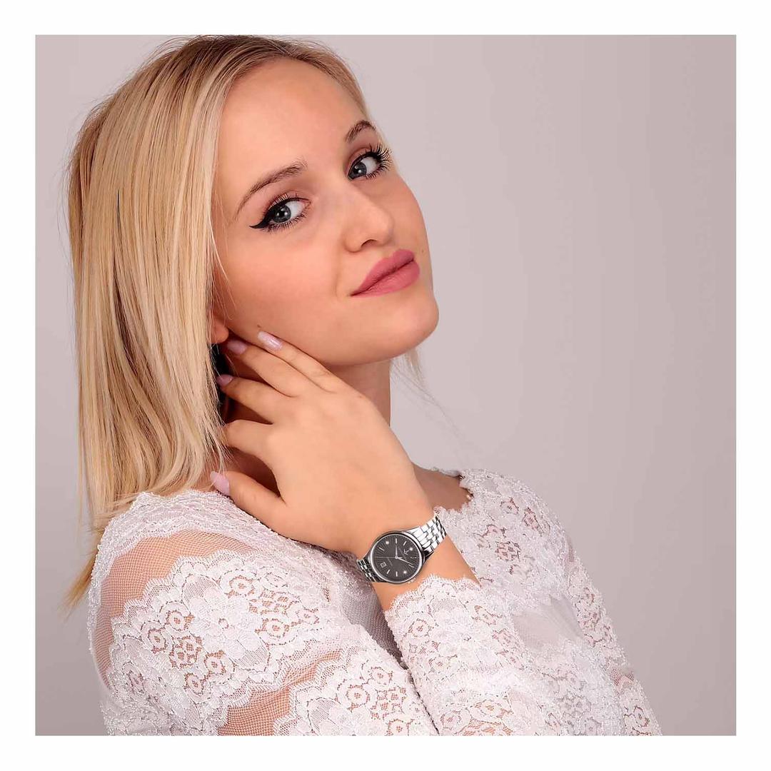 ساعت زنانه لوسین روشا مدل R0423115501 از مجموعه «Charme»، انتخابی زیبا با ترکیب اصالت و جلوههای لوکس است. قاب ۳۳ میلیمتر استیل صیقلی با تزئین نگینها، نمایی جذاب و درخشان به مچ میبخشد. شیشه سافایر کریستال ضدخش مقاومت بالا در برابر خطوخش فراهم میکند.