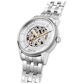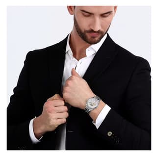 عقربهها و ایندکسها با رنگ نقرهای ملایم یا طلایی هماهنگ شده و جلوهای کلاسیک و جذاب ایجاد میکنند. بند چندقطعهای با قفل پروانهای دکمهدار ثبات و راحتی روی مچ را تضمین میکند. از نظر مشخصات فنی، ابعاد ساعت برابر ۴۲٫۵ × ۱۲٫۳ × ۴۲٫۵ میلیمتر میباشد. این ساعت کلاسیک مردانه مجهز به موتور اتوماتیک، مقاومت در برابر ضربه و شیشه معدنی مقاوم در برابر خط و خش است.