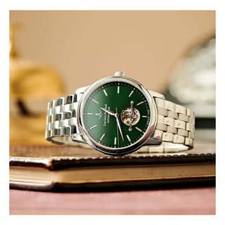 لوسین روشا مدل R0423116005 نمونهای برجسته از ترکیب طراحی کلاسیک و کیفیت فنی است. قاب فولادی ضد زنگ با قطر ۴۲ میلیمتر و ضخامت ۱۲.۳ میلیمتر، ظاهری شیک و متناسب با انواع مچها ارائه میدهد، در حالی که صفحه سبز sunray با شیشه یاقوتی مقاوم در برابر خش، وضوح و دوام بالایی دارد. در قلب این ساعت مردانه کلاسیک موتور اتوماتیک Miyota 82S0 ژاپنی تعبیه شده است که با ۲۱ جواهر، فرکانس ۲۱,۶۰۰ ارتعاش در ساعت و حدود ۴۲ ساعت ذخیره انرژی، عملکردی دقیق و مطمئن فراهم میکند.