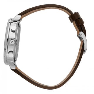 این ساعت با موتور کوارتز دقیق، زمان را بهطور مطمئن نشان میدهد و مقاومت آب تا 3 ATM امکان استفاده در شرایط مرطوب و فعالیتهای روزمره را فراهم میکند. بند چرم قهوهای با قفل سگکی ایمنی و ثبات را حفظ میکند و در عین حال جلوه ظاهری این ساعت مچی مردانه را کامل میسازد.