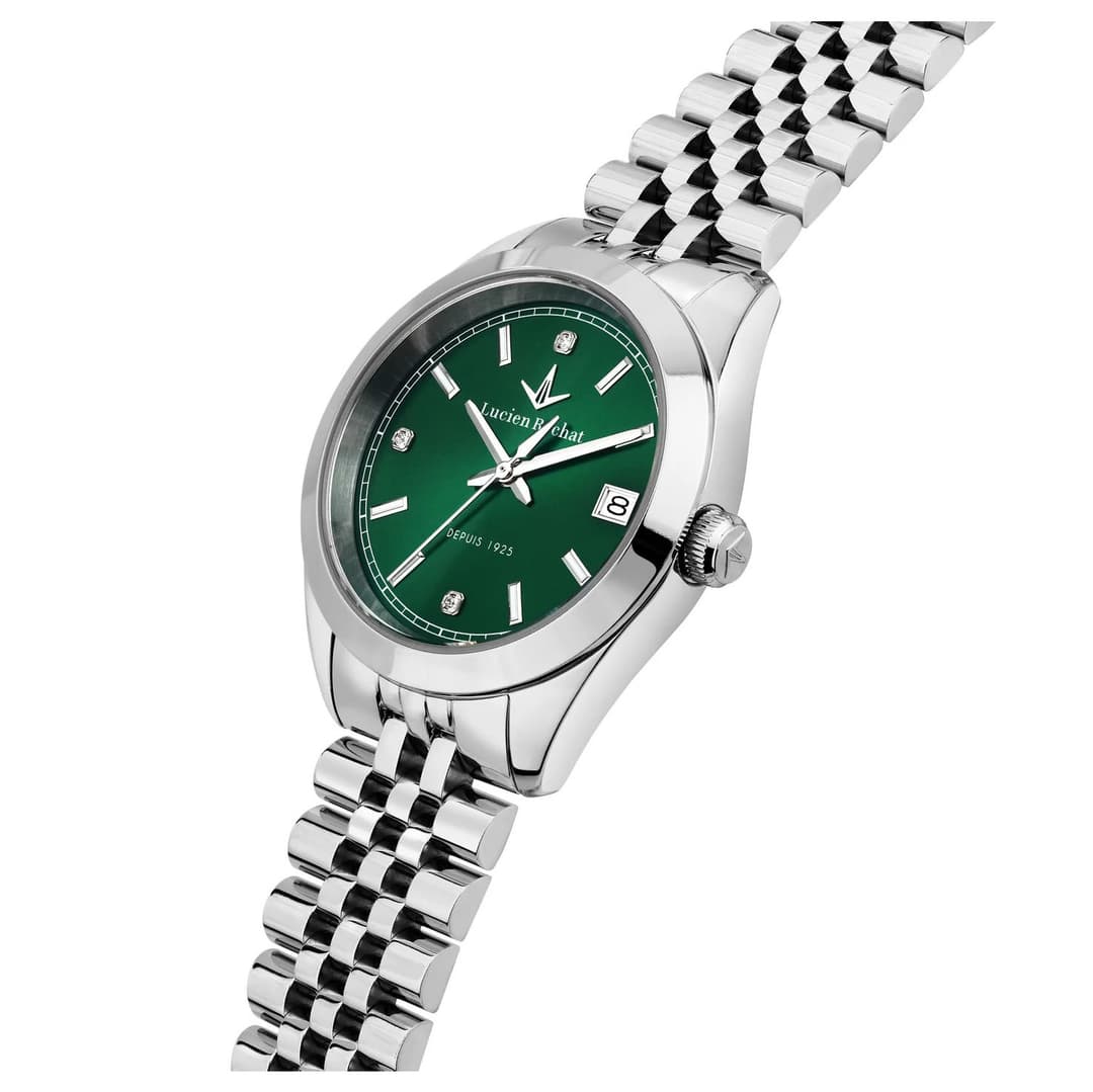 از نظر مشخصات فنی، قاب دارای ابعاد ۳۲×۳۲×۸٫۴۵ میلیمتر است و بدنه از استیل ضدزنگ با شیشه مقاوم ساخته شده است. وزن سبک ساعت استفاده روزانه را آسان میکند و مقاومت در برابر آب، خیال کاربر را در مواجهه با پاشش یا رطوبت راحت میسازد. امکانات این ساعت لوسین روشا، شامل نمایش تاریخ، عقربههای شبتاب و طراحی مقاوم در برابر ضربه و خط و خش است. با انتخاب این ساعت، ترکیبی از زیبایی، دوام و کارایی حرفهای در اختیار خواهید داشت و آن را میتوان بهعنوان هدیهای لوکس و ماندگار نیز ارائه کرد.