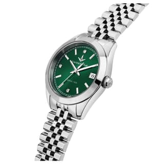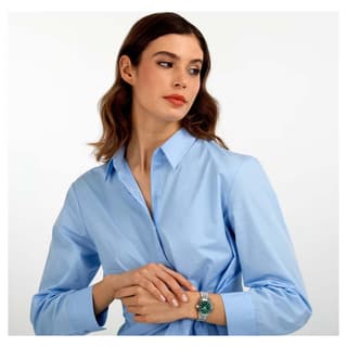 مدل R0453114522 با طراحی کلاسیک و ظرافت ایتالیایی، انتخابی ایدهآل برای خانمهایی است که به دنبال ترکیبی از شیک بودن و کارایی هستند. بدنه و قاب این مدل با کیفیت بالا ساخته شده و صفحه سبز رنگ آن با عقربهها و نشانگرهای نقرهای، جلوهای منحصر به فرد و جذاب ایجاد میکند. سبک مینیمال صفحه، خوانایی آسان زمان را فراهم کرده و تضاد رنگی سبز و نقرهای حس لوکس بودن را تقویت میکند. ساعت زنانه کلاسیک معرفیشده بهراحتی روی مچ مینشیند و بند ظریف و مقاوم آن حس سبک بودن و راحتی استفاده طولانیمدت را به همراه دارد.