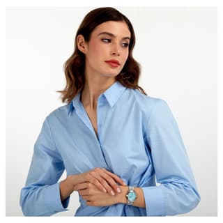 ساعت زنانه لوسین روشا مدل R0453114524 از مجموعه «Madame»، ترکیبی بینقص از طراحی مینیمالیستی، ظرافت و کیفیت ساخت بالا است که فوراً توجه را به خود جلب میکند. قاب ۳۲ میلیمتری استیل ضدزنگ با پوشش صیقلی و ضخامت ۸٫۴۵ میلیمتر، جلوهای شیک و مناسب برای مچهای ظریف ایجاد کرده است. صفحه آبی ساده با طراحی Sunray و شیشه معدنی با پوشش یاقوت، خوانایی بالا و مقاومت در برابر خطوخش را تضمین میکند.