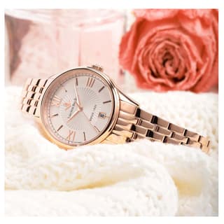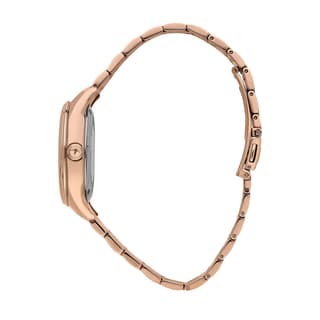 ساعت زنانه لوسین روشا مدل R0453115501 با قاب استیل با روکش رزگلد و صفحه سفید ساده همراه با بند فلزی رزگلد، ظاهری شیک و زنانه را برای استایل رسمی یا روزمره فراهم میکند. ابعاد قاب آن ۳۳ × ۳۳ × ۸.۹ میلیمتر بوده و وزن آن حدود ۸۶ گرم است که تجربه استفادهای سبک و خوشدست را روی مچ به ارمغان میآورد. موتور ساعت مچی لوسین روشا معرفیشده از نوع کوارتز (VJ32B) و بدنه از استیل با روکش PVD رزگلد ساخته شده است.