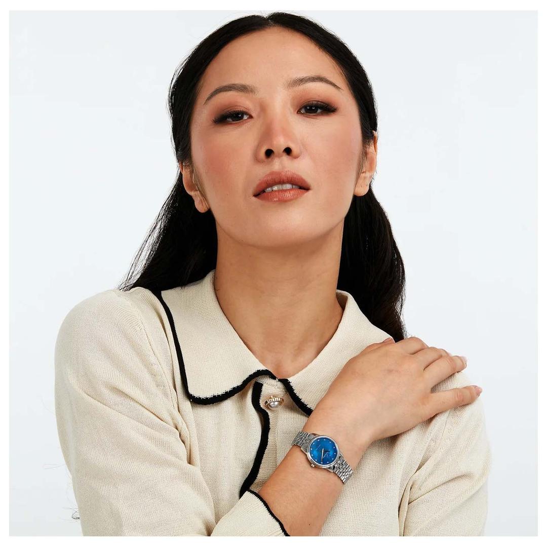 موتور کوارتز Miyota GL22، عملکردی دقیق و بیدردسر ارائه میدهد. بند استیل نقرهای با قفل deployant دکمهدار، ترکیبی از زیبایی، دوام و امنیت را به همراه دارد. مقاومت در برابر آب تا فشار ۳ اتمسفر (۳۰ متر)، امکان استفاده در شرایطی مانند شستوشوی دست یا باران سبک را فراهم میکند.