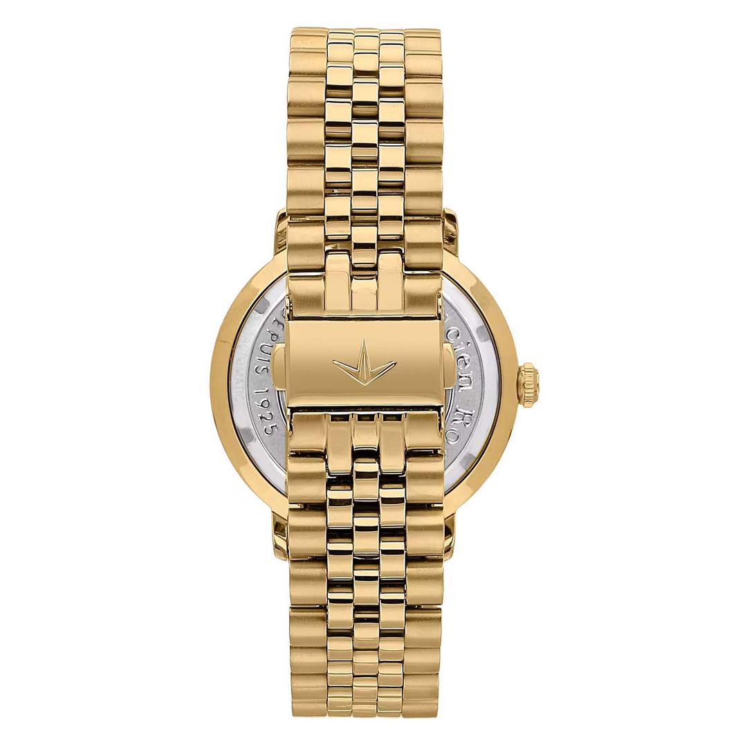 این مدل با موتور اتوماتیک کار میکند و عملکرد کرنوگراف را ارائه میدهد. بند استیل طلایی با قفل سگکی، راحتی و استحکام را در استفاده روزمره تضمین میکند. مقاومت در برابر آب تا ۳ اتمسفر (۳۰ متر)، امکان استفاده در شرایطی مانند شستوشوی دست یا باران سبک را فراهم میآورد.