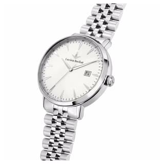 ساعت مردانه لوسین روشا R0453120004 از مجموعه «Garçon»، ترکیبی از طراحی چشمگیر، ظرافت و عملکرد دقیق است. قاب ۴۰ میلیمتری استیل با پرداخت صیقلی و ضخامت حدود ۱۰.۸ میلیمتر جلوهای متوازن و برجسته روی مچ ایجاد میکند. صفحه مشکی با طراحی مینیمالیستی و شیشه سافایر کریستال ضدخش، جلوهای شفاف و مقاوم به همراه دارد.