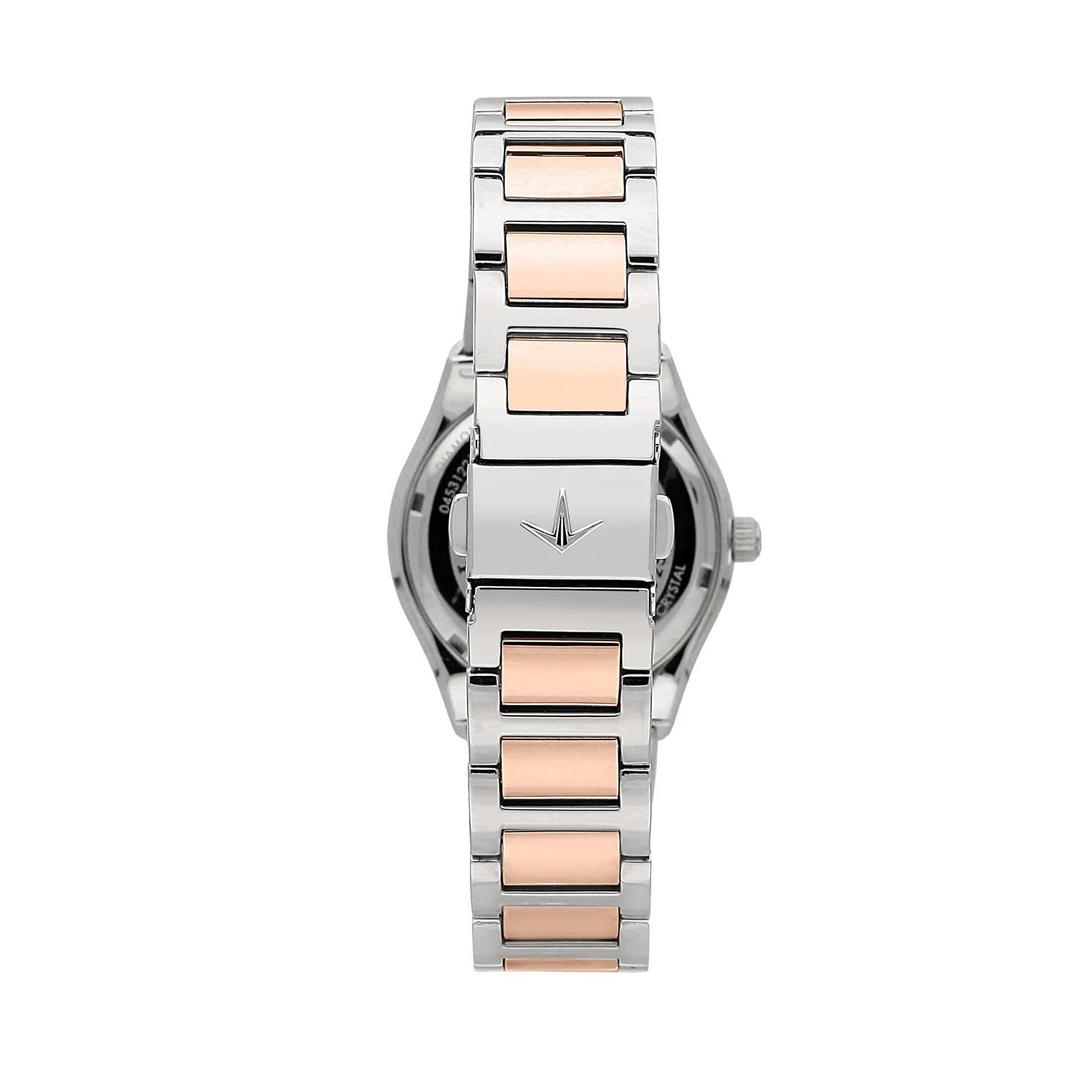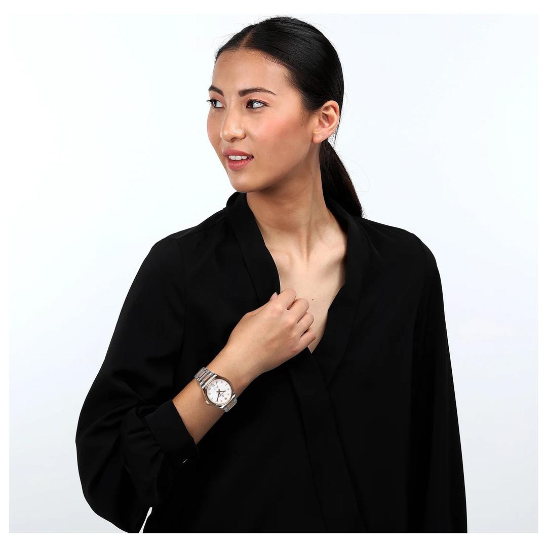 موتور کوارتز ژاپنی زمان را با دقت و بدون دردسر نمایش میدهد و بند استیل رزگلد با قفل deployant دکمهدار، دوام، امنیت و راحتی را فراهم میکند. مقاومت در برابر آب تا فشار ۳ اتمسفر (۳۰ متر)، استفاده روزمره در شرایطی مانند شستوشوی دست یا باران سبک را ممکن میسازد.