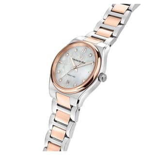 لوسین روشا مدل R0453122501 طراحی کلاسیک و باوقاری دارد که با رنگبندی دوگانه قاب نقرهای و رزگلد جلوهای زنانه و لوکس ایجاد میکند. صفحه آن به رنگ خاکستری ملایم بوده و شاخصهای آن با گوهرهای طبیعی (الماس) تزئین شدهاند. بند فلزی دو رنگ آن با قفل دپلویمنت دکمهای راحتی و امنیت را تضمین میکند، و قاب با ابعاد ۳۴ × ۳۴ × ~۸.۴ میلیمتر تجربهای خوشدست و مناسب مچ خانمها فراهم میآورد. از نظر فنی، ساعت مچی زنانه لوسین روشا مدل R0453122501 با موتور کوارتز MIYOTA GM12 کار میکند.
