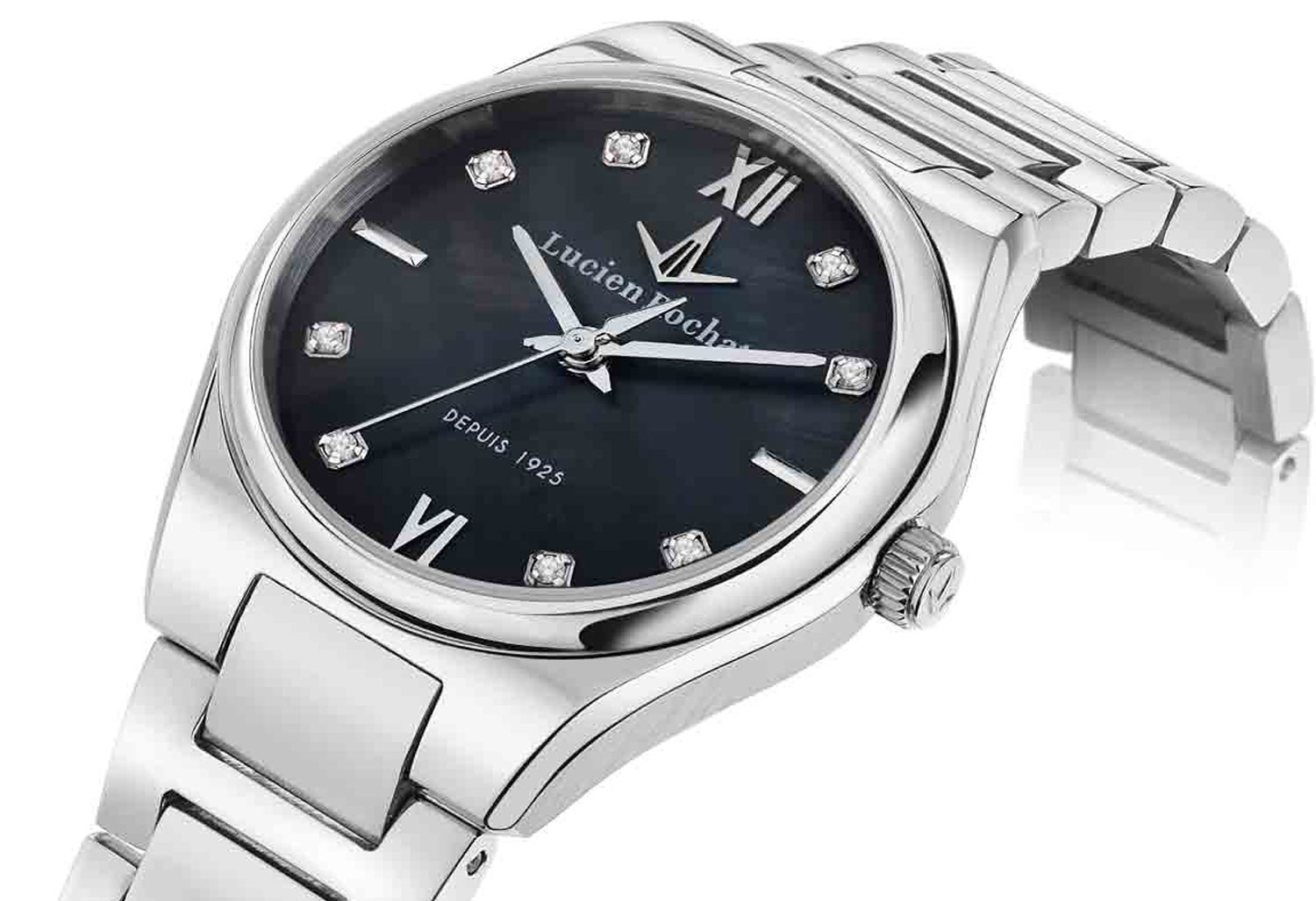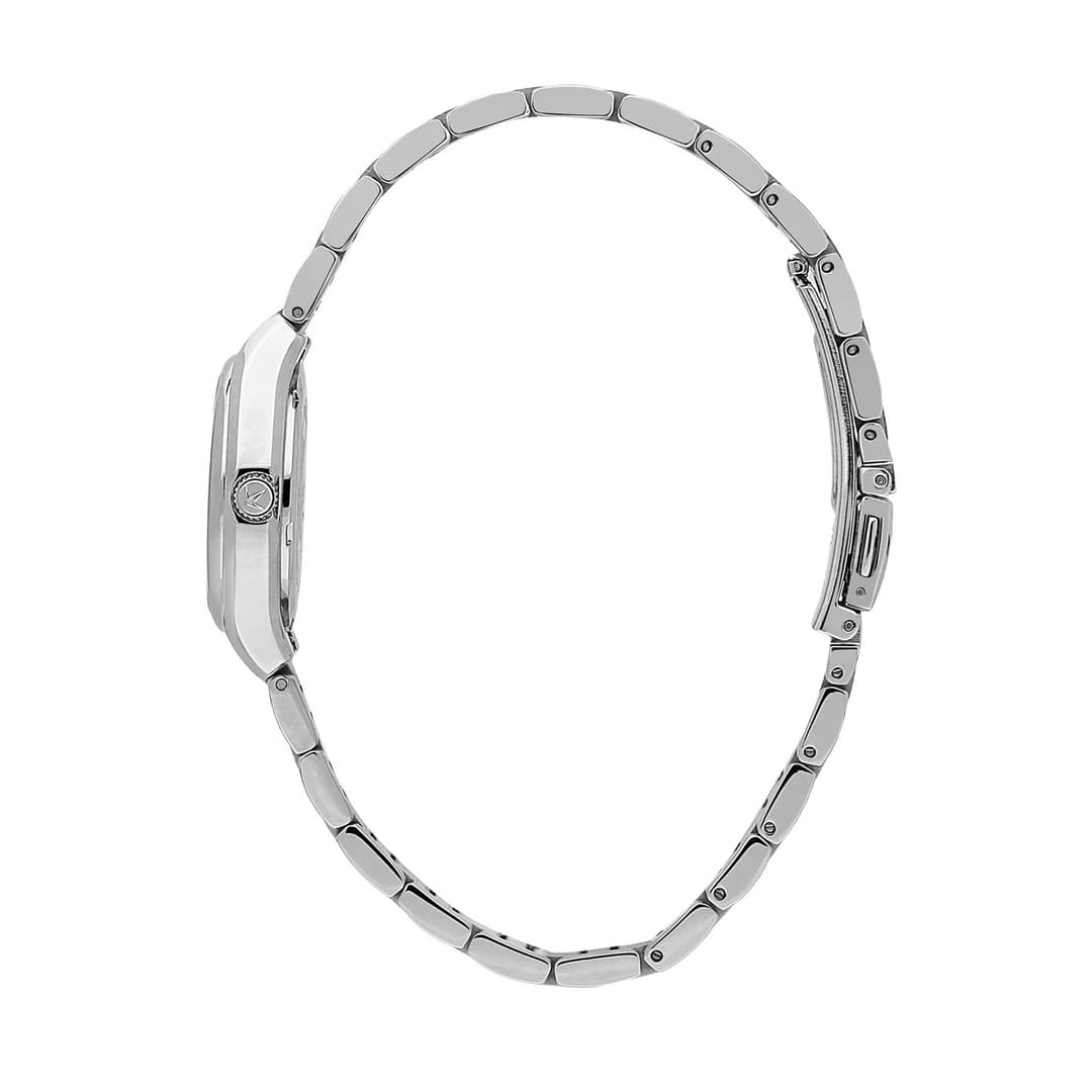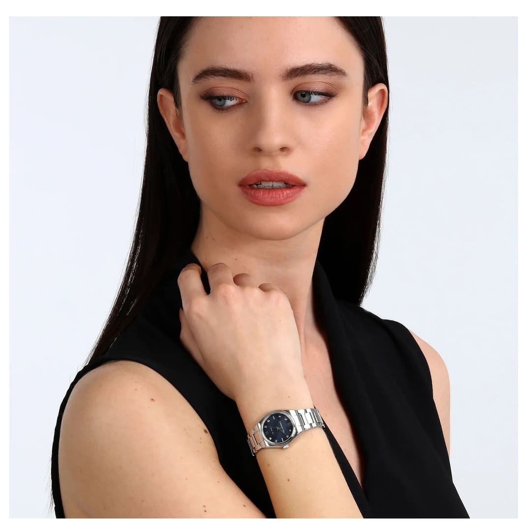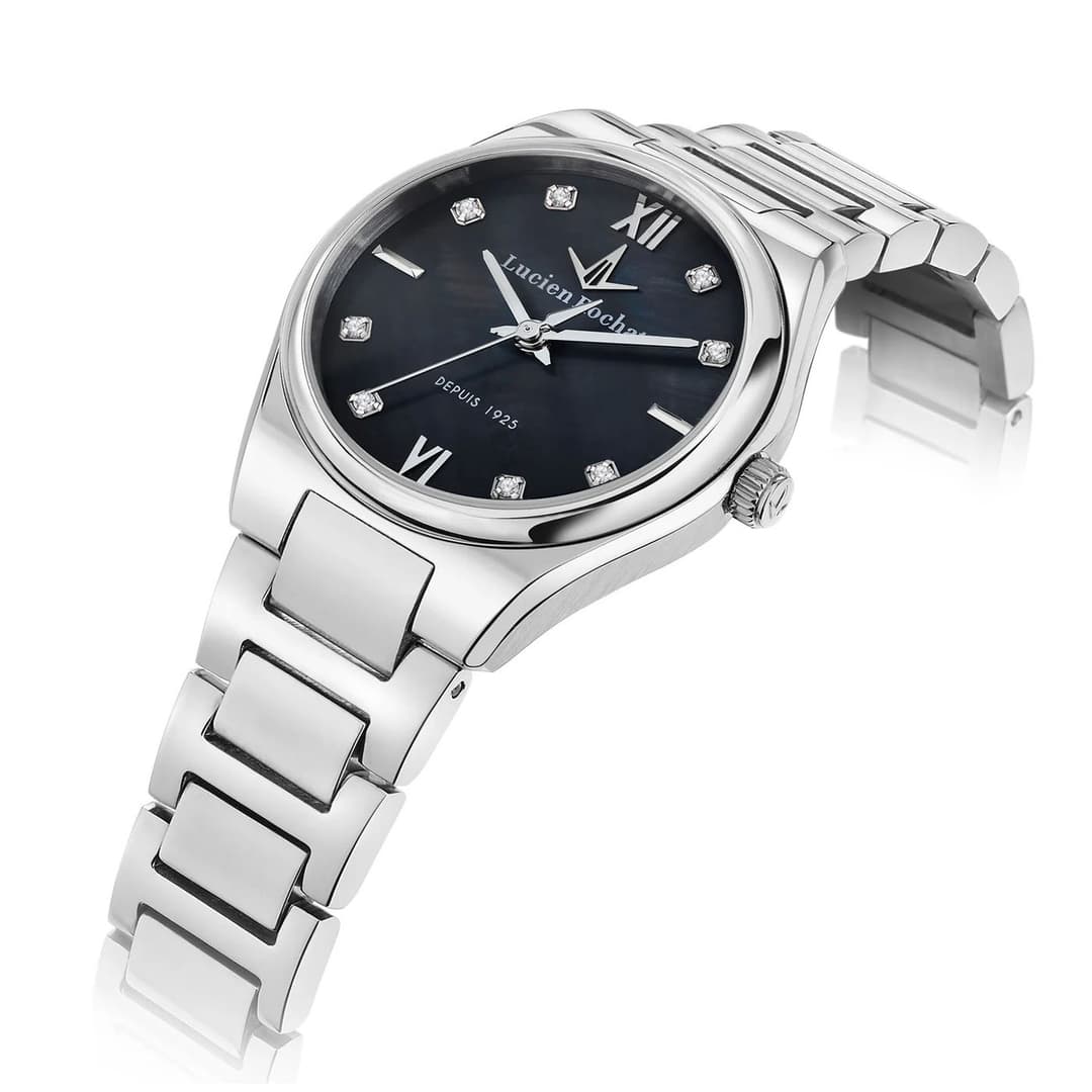 ساعت زنانه لوسین روشا مدل R0453122512 با طراحی کلاسیک و زنانه عرضه شده و ظاهری شیک و موقر دارد که بهخوبی با استایل رسمی یا نیمهرسمی هماهنگ میشود. رنگ قاب و بند نقرهای بوده و صفحه مشکی آن جلوهای جدی و در عین حال زنانه ایجاد میکند؛ این ترکیب رنگی امکان ست کردن ساعت با لباسهای مجلسی یا جواهرات را آسان میکند. بند فلزی و بدنه استیل باعث حس استحکام و راحتی روی مچ میشوند؛ قاب نسبتاً کوچک با ابعاد ۲۸×۷×۲۸ میلیمتر و وزن حدود ۴۵ گرم ساعت را سبک و خوشدست میکند.