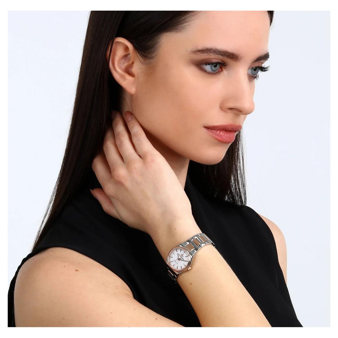 موتور کوارتز ژاپنی، زمان را با دقت و بدون دردسر نمایش میدهد و بند استیل رزگلد با قفل deployant دکمهدار، دوام، امنیت و راحتی را فراهم میکند. مقاومت در برابر آب تا فشار ۳ اتمسفر (۳۰ متر)، استفاده روزمره در شرایطی مانند شستوشوی دست یا باران سبک را ممکن میسازد.
