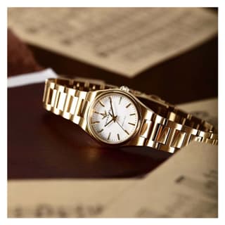 صفحه این مدل ساده و مینیمال است و شیشه سافایر کریستال ضد خش مقاومت مناسبی در برابر خطوخش ارائه میدهد. بند استیل طلایی با قفل deployante دکمهدار، ترکیبی از زیبایی، امنیت و راحتی را فراهم میکند.